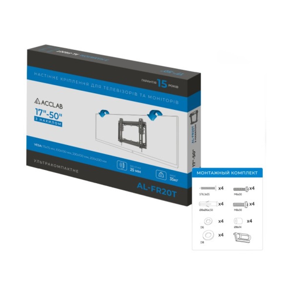 Універсальність та практичність цього кронштейна робить його відмінним вибором як для офісу, так і для дому. Перетворіть ваш перегляд телевізора або роботу з монітором в справжнє задоволення з надійним кронштейном ACCLAB AL-FR20/T.
