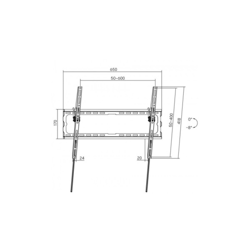 Кут нахилу кронштейна можна регулювати від 0° до -8°, що дозволяє налаштувати оптимальний ракурс перегляду відповідно до вашого розташування в кімнаті. Це важлива особливість для уникнення відблисків та підвищення зручності під час перегляду вашого улюбленого контенту.