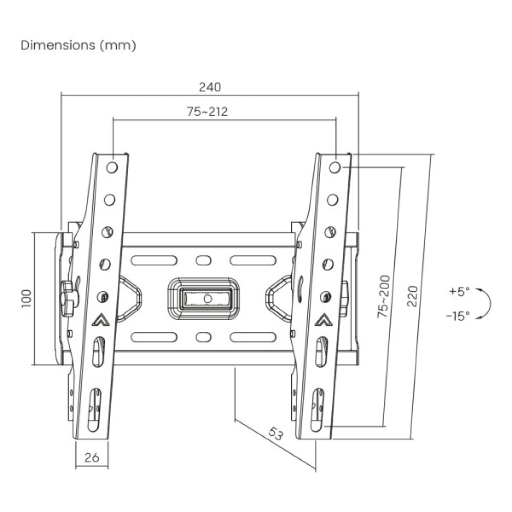 Цей похилий тип кронштейна забезпечує кут нахилу від +5° до -15°, що дозволяє з легкістю налаштувати кут огляду, забезпечуючи максимальний комфорт перегляду у будь-який момент. Компактні розміри з відстанню від стіни всього 53 мм роблять цю модель непомітною, але функціональною частиною кімнати, не забираючи надміру простору.