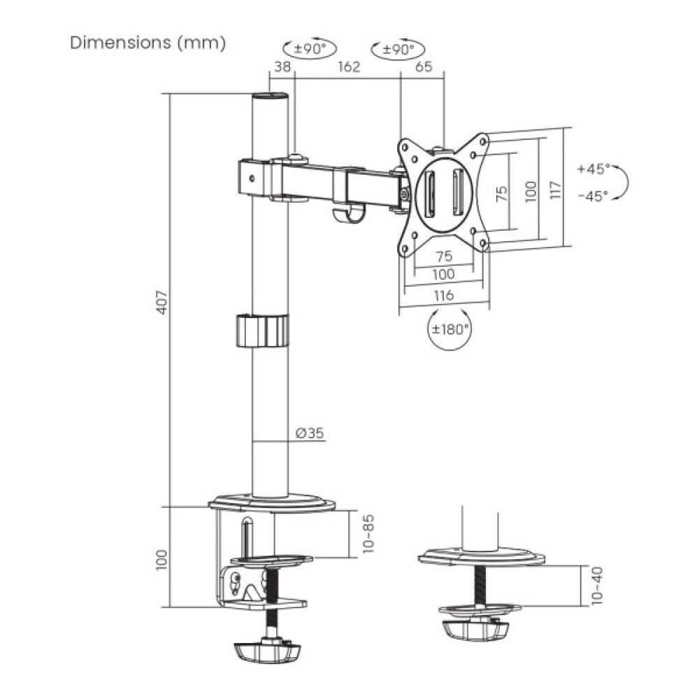 Різноманіття підтримуваних стандартів VESA, зокрема 100 x 100 та 75 x 75, гарантує сумісність з більшістю моніторів на ринку. Це робить монтаж простим і швидким навіть для тих, хто раніше не встановлював подібні пристрої. Комплект постачання включає в себе кронштейн, інструкцію та монтажний комплект, що дозволяє без зайвих зусиль здійснити установку на будь-якому робочому столі.