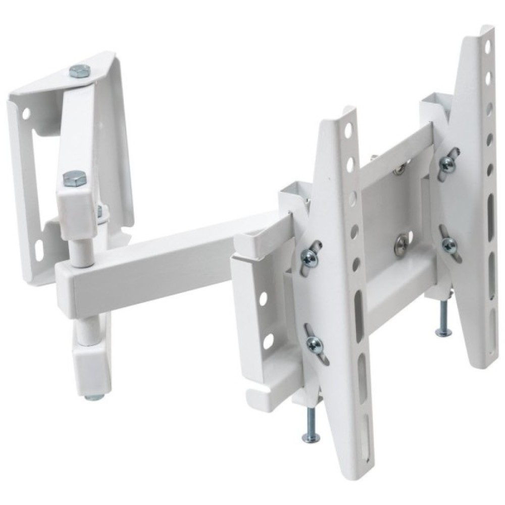 Цей кронштейн має чотири ступені свободи, що дозволяє легко регулювати не лише нахил, але й висоту та винос пристрою від стіни. Завдяки куту нахилу від -12° до 12°, ви зможете налаштувати екран під найзручнішим для вас кутом, щоб отримувати максимальне задоволення від перегляду. Його стильний білий колір легко інтегрується в будь-який інтер'єр, додаючи естетичної привабливості вашому простору.