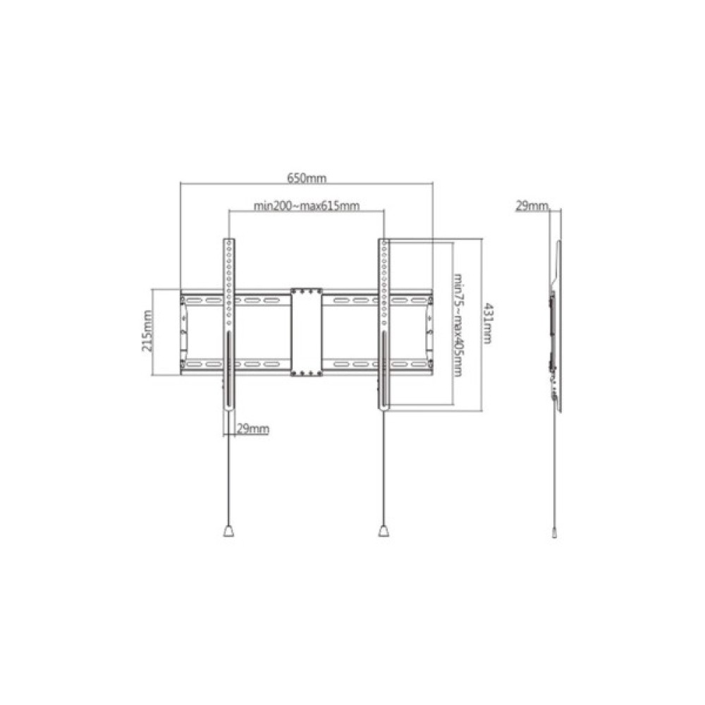Кронштейн сумісний зі стандартом VESA розмірами 200x200 до 600x400 мм, що підтримує широкий вибір діагоналей телевізорів — від 37" до вражаючих 80". Це робить його ідеальним для різноманітних моделей телевізійних екранів, включаючи популярні розміри, такі як 75", 65" та інші.