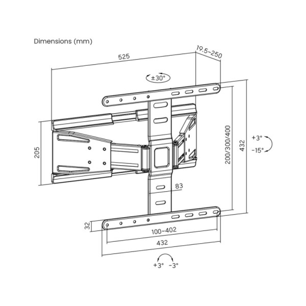 Завдяки *куту нахилу від 3° до -15°* та *куту повороту від +30° до -30°*, ви зможете налаштувати нахил екрана для ідеального та комфортного перегляду без відблисків. Це дозволяє адаптувати розташування екрана під індивідуальні потреби користувача, що є великою перевагою для великих і малих приміщень.
