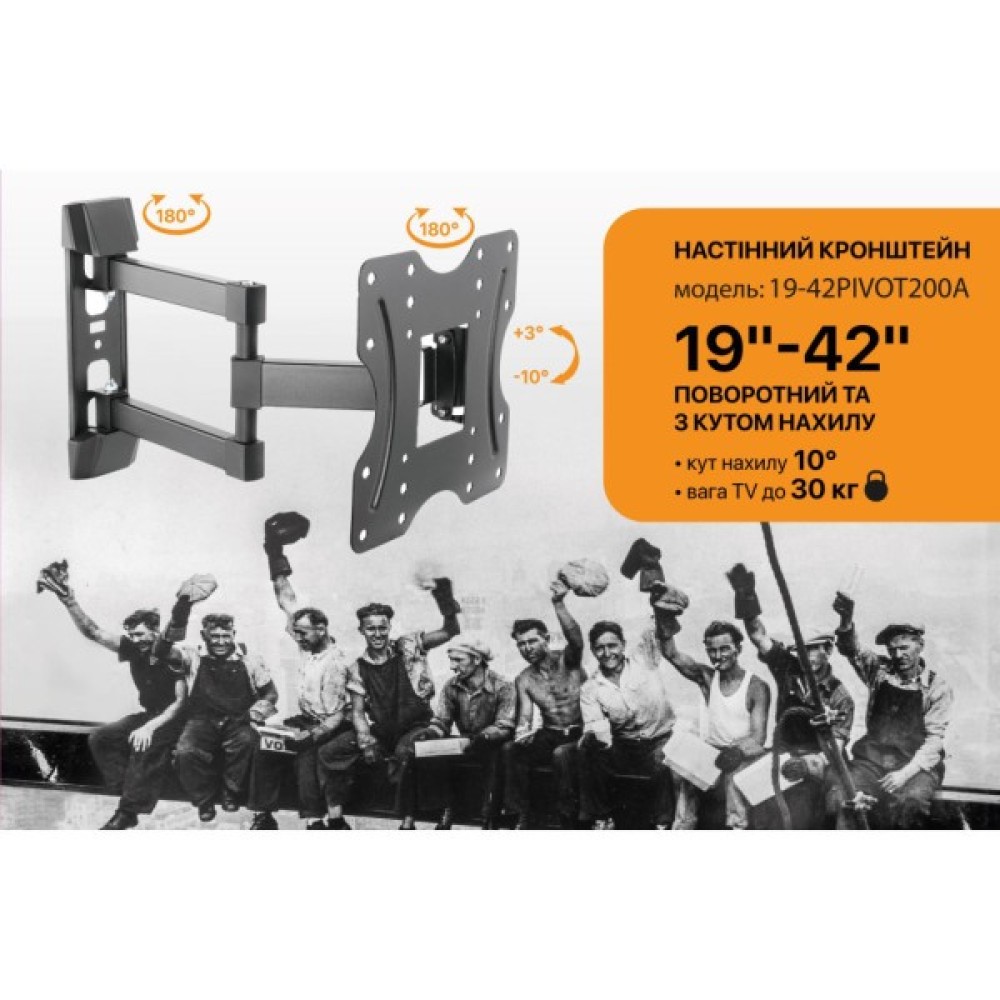Кронштейн Satelit 19-42PIVOT200A (250515) - це стильне та функціональне рішення для встановлення вашого телевізора чи монітора. Розроблений для підвісного монтажу на стіну, цей кронштейн поєднує в собі високу якість і універсальність, з легкістю підтримуючи телевізори діагоналлю від 19" до 42". Завдяки технології VESA стандартів 100 x 100 до 200 x 200 та максимальному навантаженню до 30 кг, він забезпечує стабільну й надійну основу для вашої техніки.