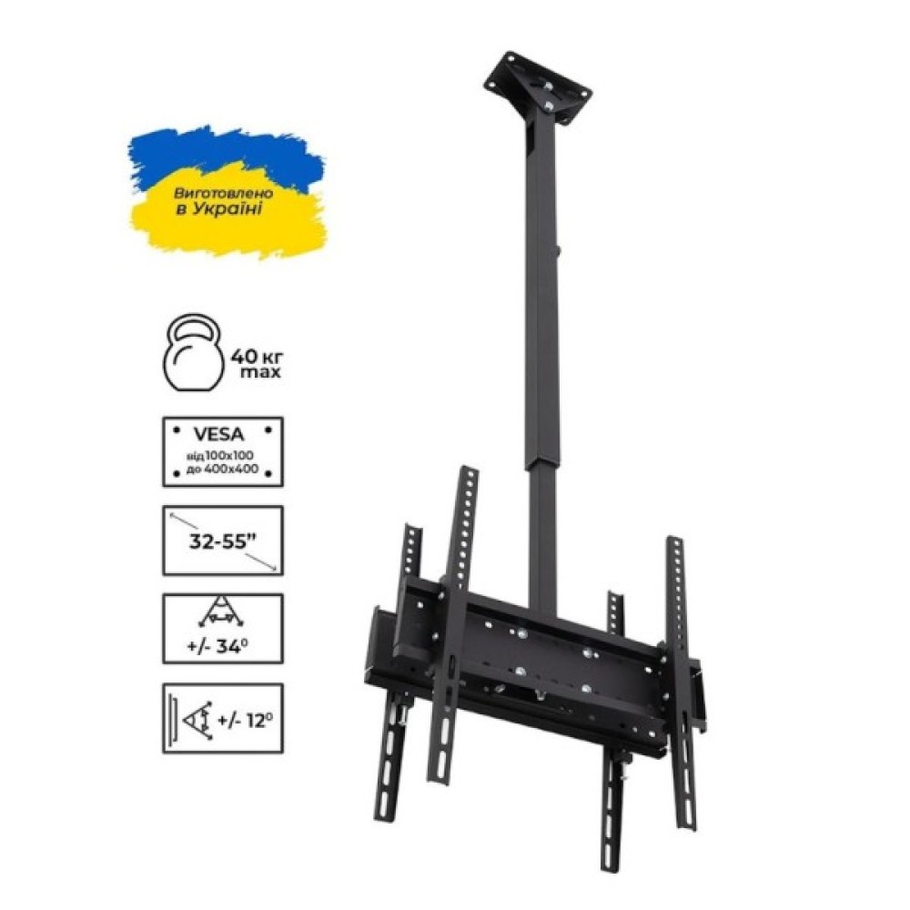 Кронштейн Sector CM-402T — ваше оптимальне рішення для надійного та сучасного монтажу телевізорів на стелю. Цей похилій стельовий кронштейн розроблений для телевізорів з діагоналлю від 32" до 55", що робить його універсальним вибором для різних приміщень - від готелів до кафе. Виготовлений з високоякісного металу, цей кронштейн гарантує міцність і довговічність конструкції, здатної витримувати навантаження до 40 кг.
