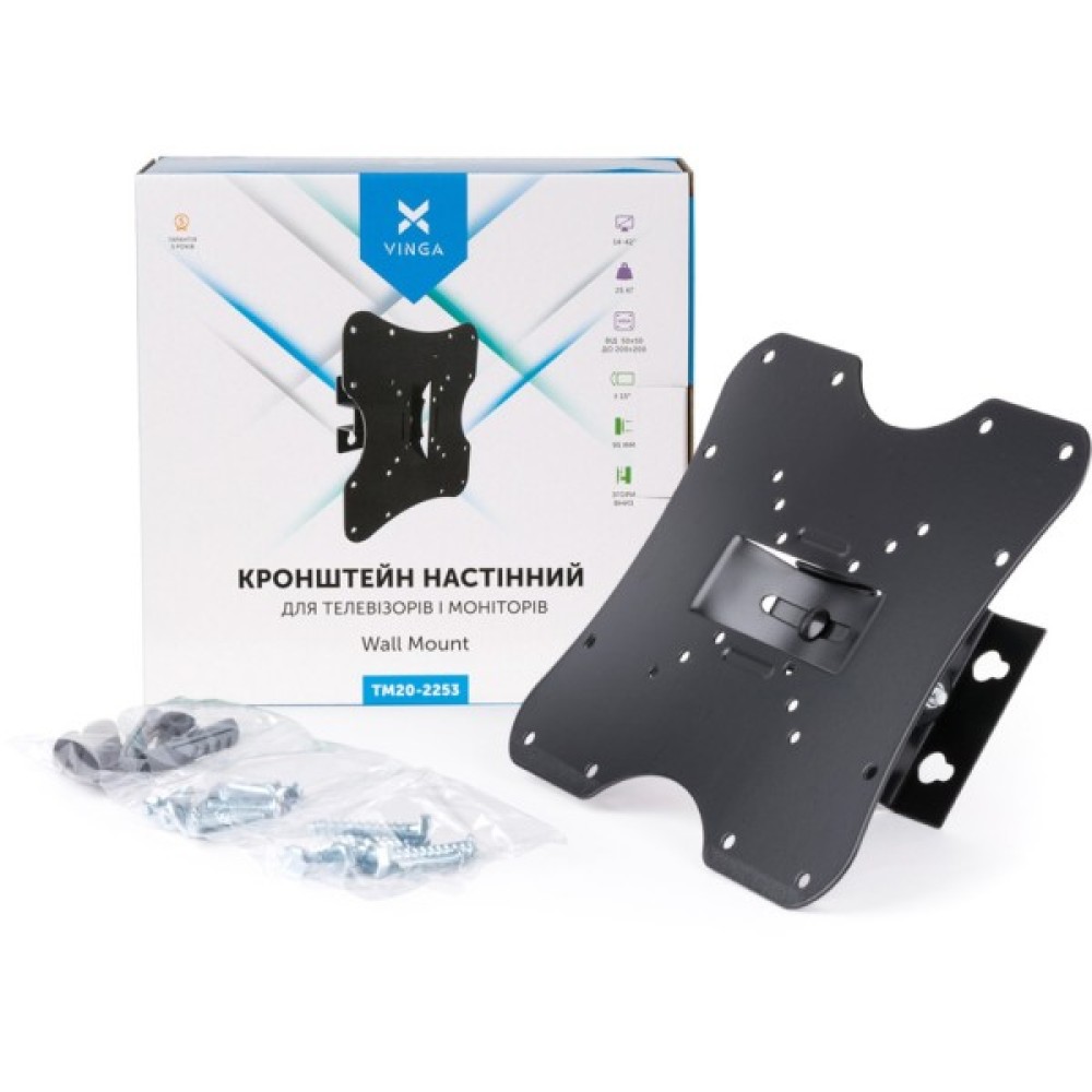 Кронштейн Vinga TM20-2253 – це надійне та стильне рішення для кріплення вашого телевізора або монітора на стіну. Створений для максимального зручності, цей похилий кронштейн дозволяє оптимально розмістити ваш екран, звільняючи простір і додаючи естетичної витонченості будь-якому інтер'єру.