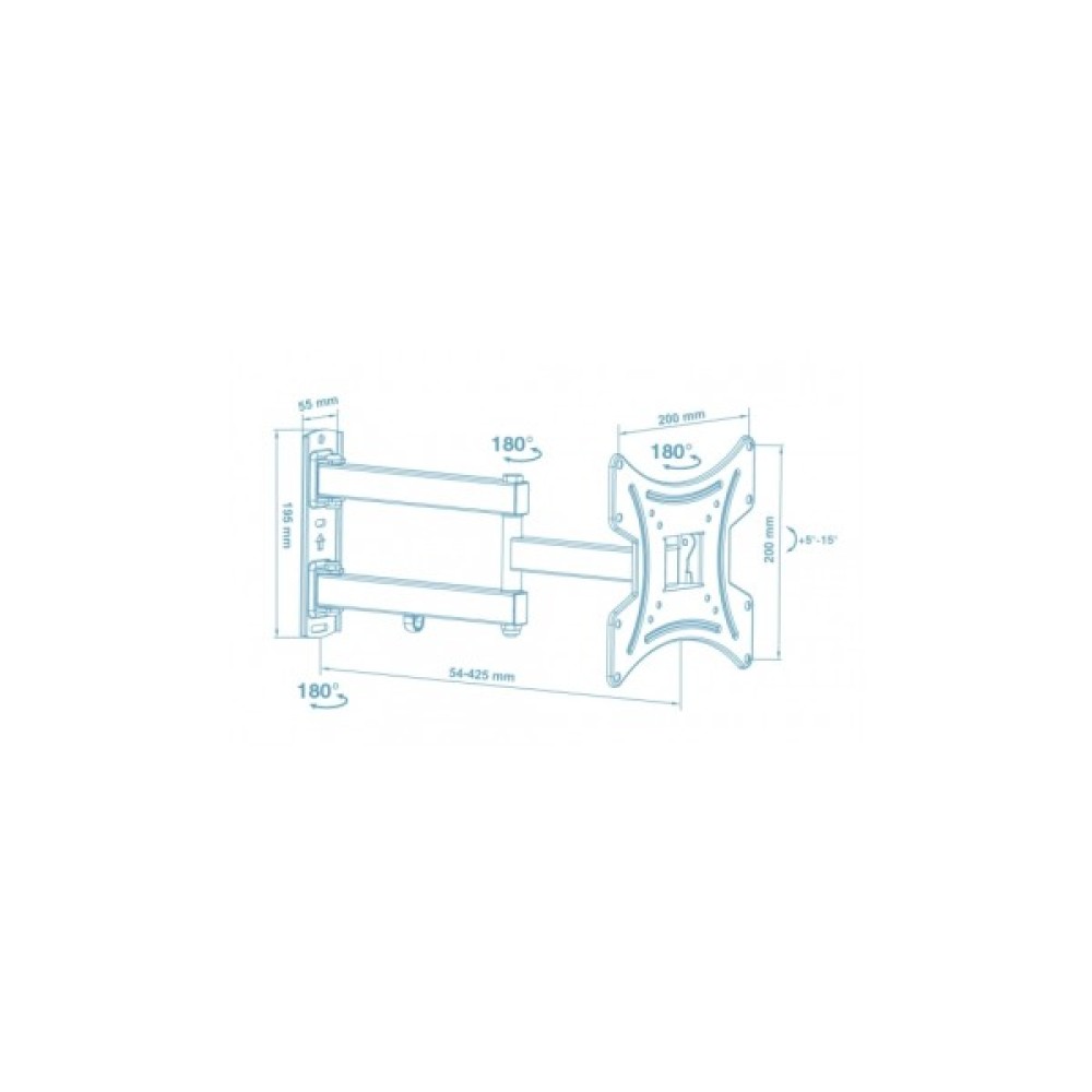 Особливу увагу варто звернути на міцність і надійність конструкції, що дозволяє витримувати навантаження до 25 кг. Це забезпечує безпеку навіть для важких пристроїв та гарантує довгий термін служби. Відстань до стіни регулюється від 54 до 425 мм, забезпечуючи гнучкість у виборі позиції.