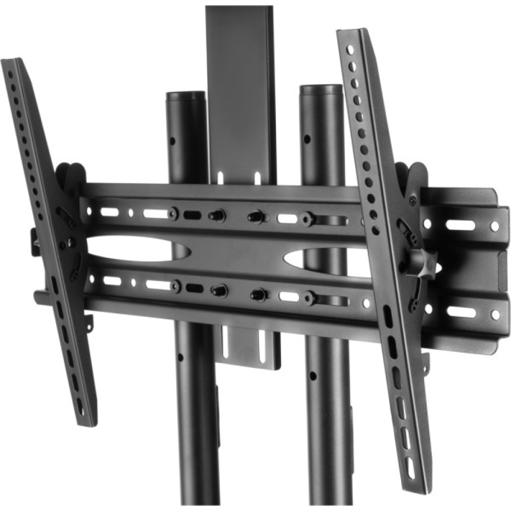 Полиця для телевізорів може витримати вагу до 50 кг, розмір екрану варіюється від 37" до 70". Діапазон нахилу полиці становить +10°~ -10°. Висоту телевізора можна регулювати у трьох положеннях: 1290, 1370 та 1450 мм. Передбачено полицю для камери вагою 5 кг, розмір полиці 298 х 228 мм. Зафіксувати камеру можна на висоті 1643, 1723 та 1803 мм. Навантаження AV-полиці становить 10 кг, а розмір – 485 х 293 мм.