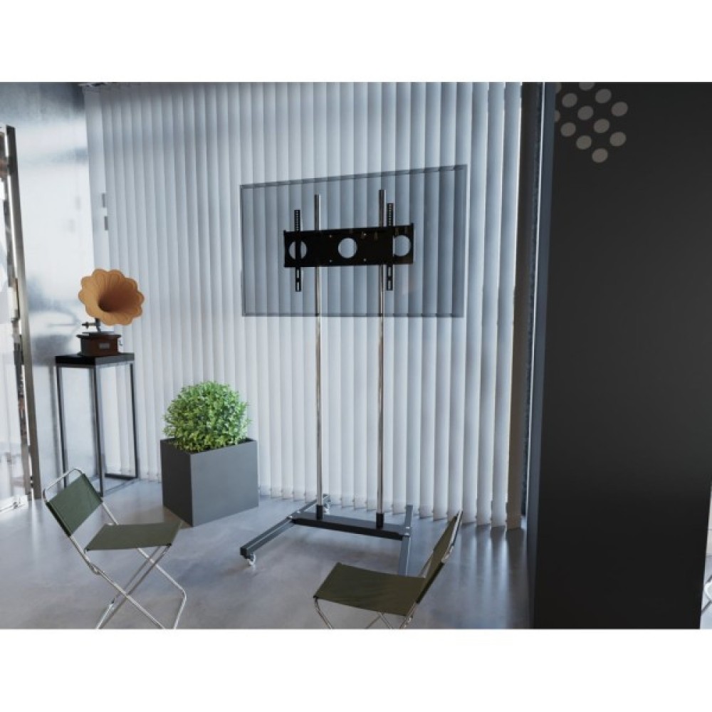 Заощадьте гроші на купівлі декількох телевізорів, переміщаючи один за допомогою мобільного стенду PS1. Роликові коліщатка допоможуть помістити екран куди необхідно, перетворюючи будь-яке приміщення на зал для конференцій або презентацій.