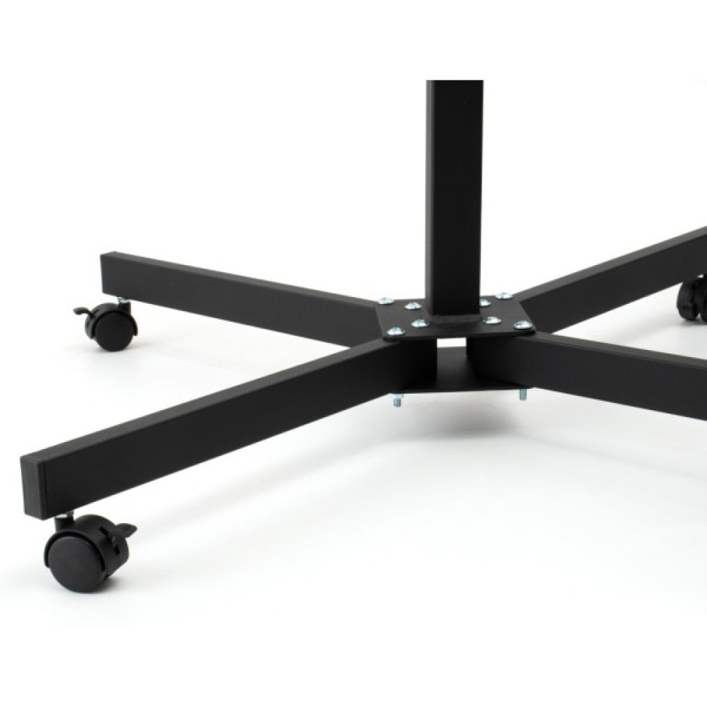 Наявність роликових коліс полегшує переміщення стійки, а розбірна конструкція забезпечує легке складання, зберігання та транспортування.