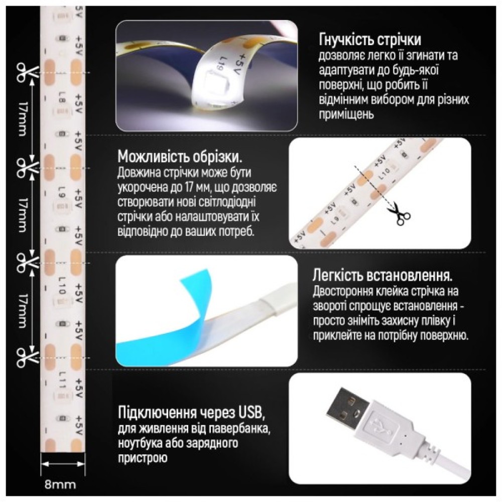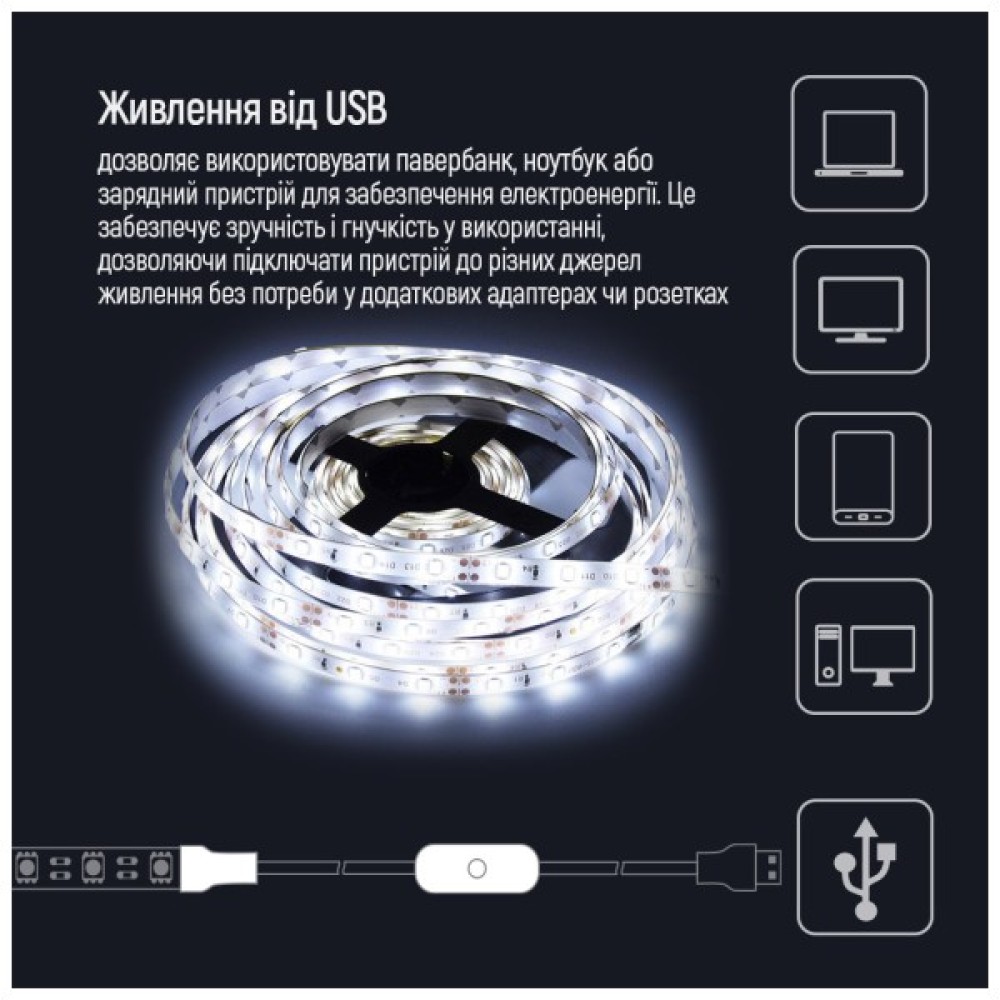 • Безпечна напруга 5В, що робить стрічку безпечною у використанні