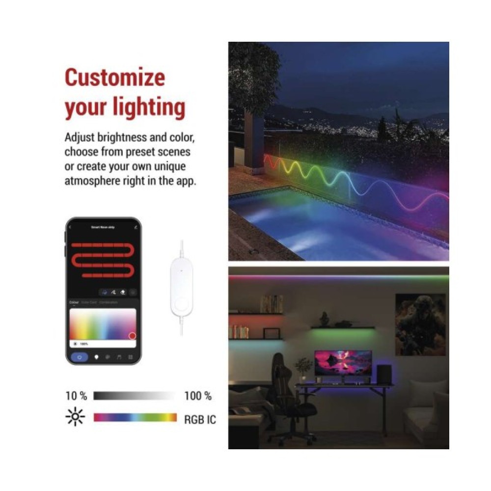 Відкрийте для себе магію освітлення з гнучкою світлодіодною стрічкою ZPW313I від чеського виробника EMOS. Ця 3-метрова стрічка RGB-IC з понад 16 мільйонами кольорів пропонує керування кольором сегментів і повністю керується через безкоштовний застосунок EMOS GoSmart, який доступний як для Android, так і для iOS. Відрегулюйте кольори, яскравість та освітлення на свій смак, дозвольте стрічці реагувати на музику, використовуйте попередньо встановлені або власні режими освітлення, створюйте сцени та автоматизуйте. Багатофункціональна світлодіодна стрічка NEON створить сильну атмосферу, яка ідеально відповідає вашому стилю!