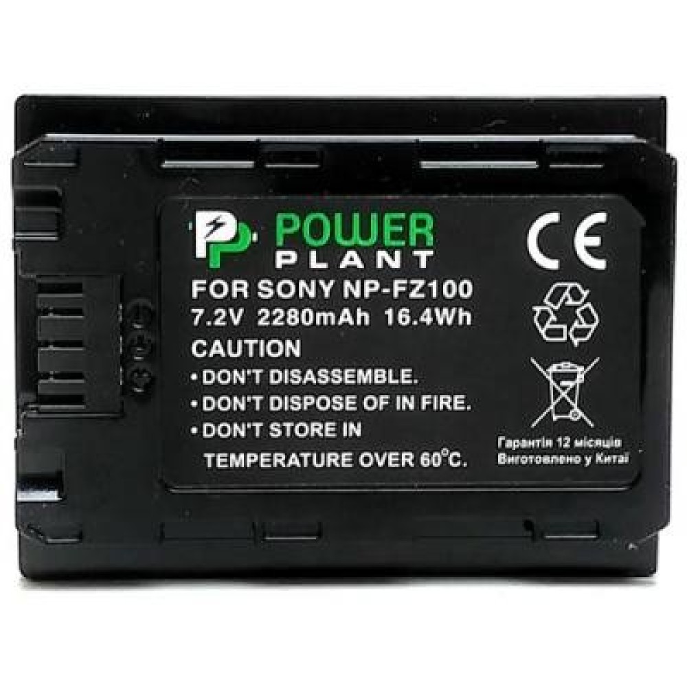 Акумулятор до фото / відео PowerPlant Sony NP-FZ100 2280mAh (CB970117)Акумулятор Sony NP-FZ100 ємністю 2280 mAh, що дозволяє робити до 650 кадрів на одному повному заряді при роботі з фотоапаратами Sony серії Alpha α9 Зберігає до 90% свого ресурсу після 500 циклів заряду / розряду при регулярному використанні протягом 10 років.
