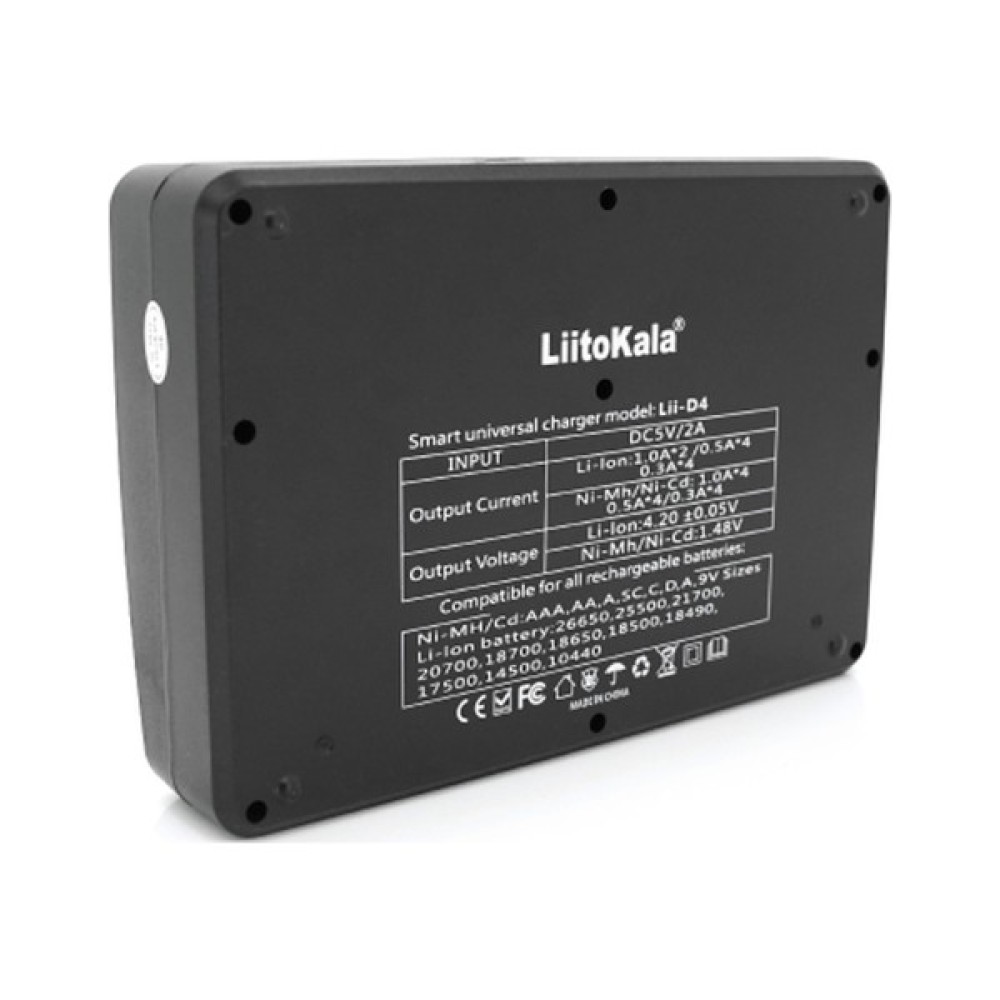 ЗУ універсальне Liitokala Lii-D4 є зарядним пристроєм з можливістю заряду різних типів акумуляторів, включаючи Ni-MH, Ni-Cd і Li-ion/IMR.