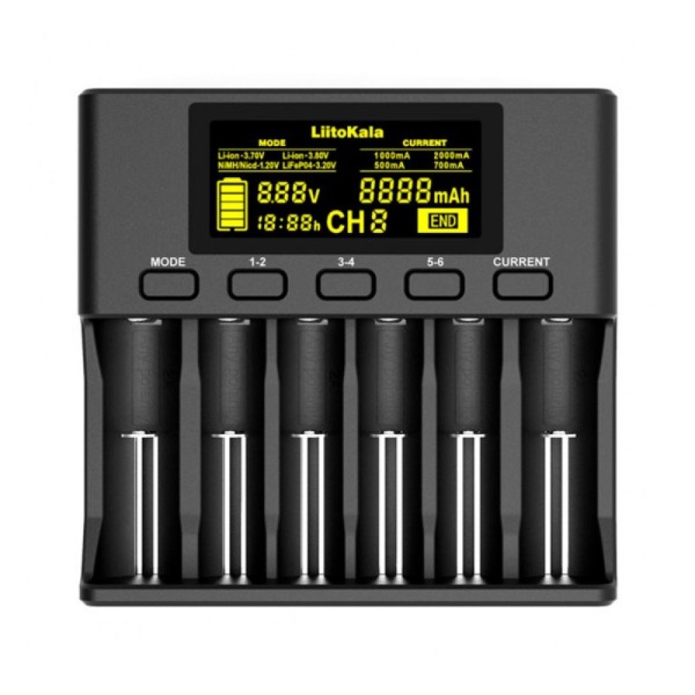 Зарядний пристрій для акумуляторів Liitokala 6 Slots, LCD дисплей, Li-ion/Ni-MH/Ni-Cd/AA/ААA/AAAA/С (Lii-S6)