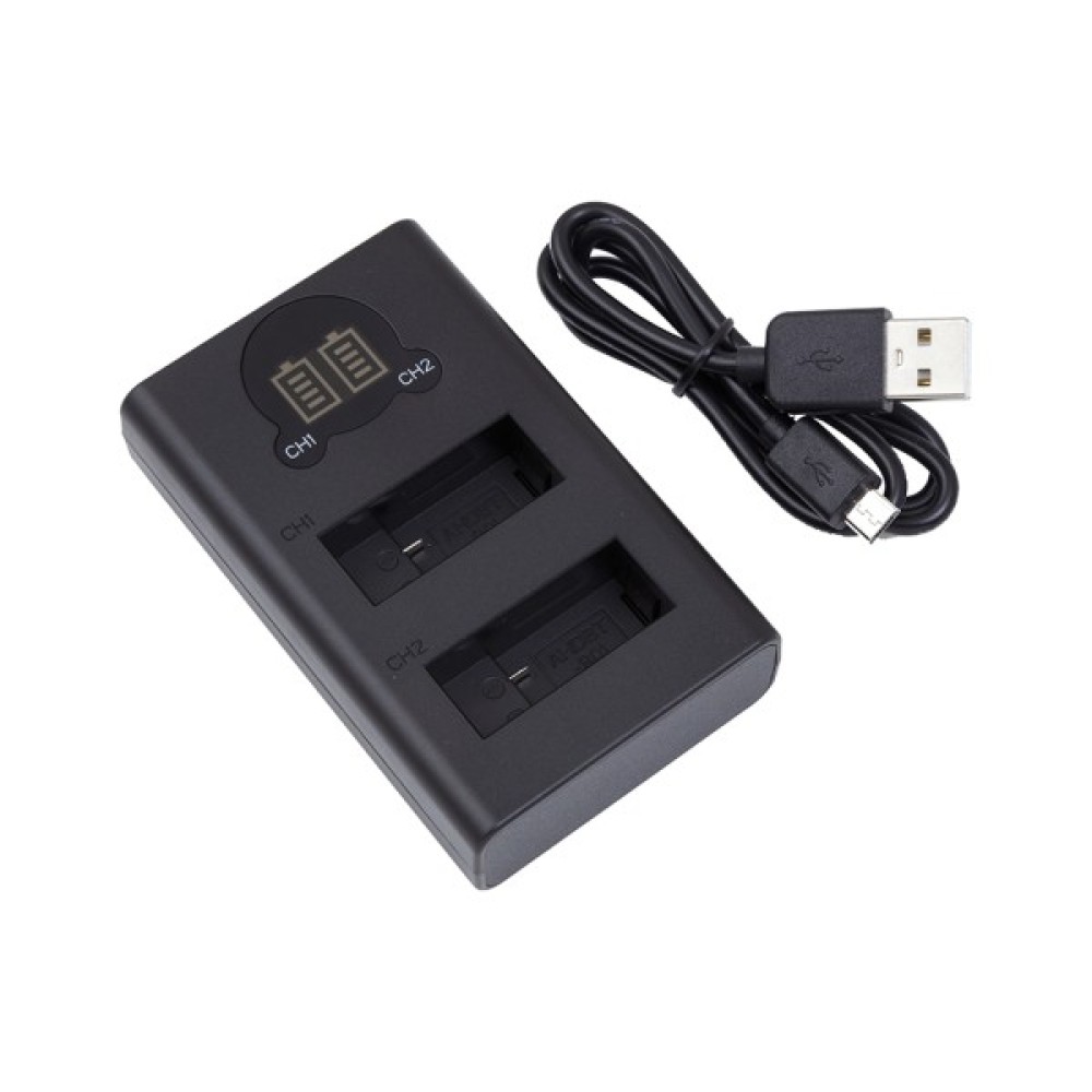 "Інтелектуальний" зарядний пристрій для Li-ion акумуляторів, що дає змогу заряджати акумулятор швидко й безпечно. Зарядний пристрій повністю сумісний з оригінальним. З особливостей зарядного пристрою можна наголосити на компактному й оригінальному дизайні та універсальності, підходить для більшості акумуляторів до фото та відеотехніки. Індикатор підключення до мережі та індикатор заряджання показують статус заряду акумулятора і захищає його від "надлишкового заряджання" й перепаду напруги в мережі. Працює від USB.
