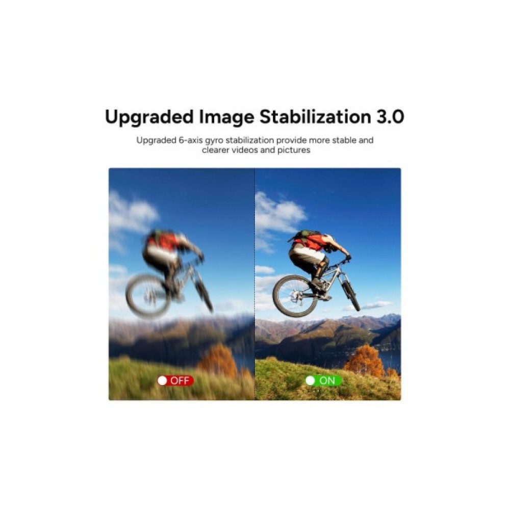 Записуйте плавне та чітке відео на ходу. Екшн-камера оснащена вбудованим шестиосьовим стабілізатором гіроскопа, який зменшує розмитість зображення при рухомій камері.