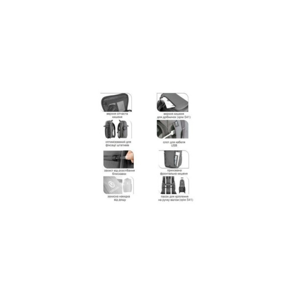 Рюкзак Vanguard VEO Adaptor S41 продуманий до дрібниць, що робить його мультифункціональним, та піднімає комфорт використання на новий рівень. Два великі бічні входи в основне відділення роблять доступ до камери зручним, з якого плеча Ви б не зняли рюкзак. Рюкзак має нагрудний та поясний ремені, що дозволяють розвантажити плечі, якщо рюкзак важкий, та активно пересуватись. Коли в ременях немає необхідності - вони можуть бути зняті, чи складені в спеціальні приховані кишеньки. Прихована текстильна п'ята, знімний ремінець на фастексі, бічні кишені та система петель дозволяють зафіксувати повнорозмірний штатив в трьох різних положеннях зовні рюкзака. М'яка внутрішня кишеня вміщає планшет з діагоналлю до 11".