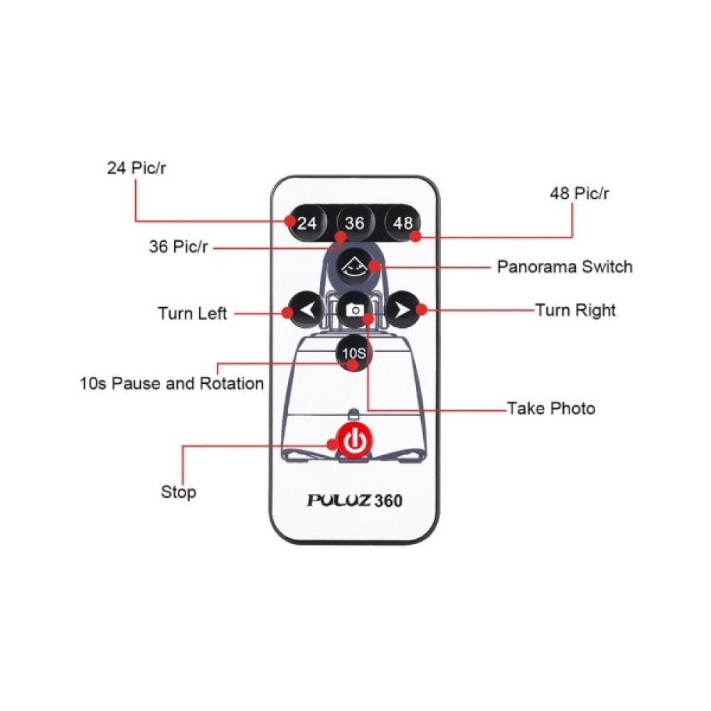Панорамна головка керується за допомогою ІЧ-пульта. На головці розташована тільки кнопка увімкнення. Пульт дистанційного керування можна синхронізувати зі смартфоном через Bluetooth, якщо версія Android вище 3.0 або iOS 4.0.