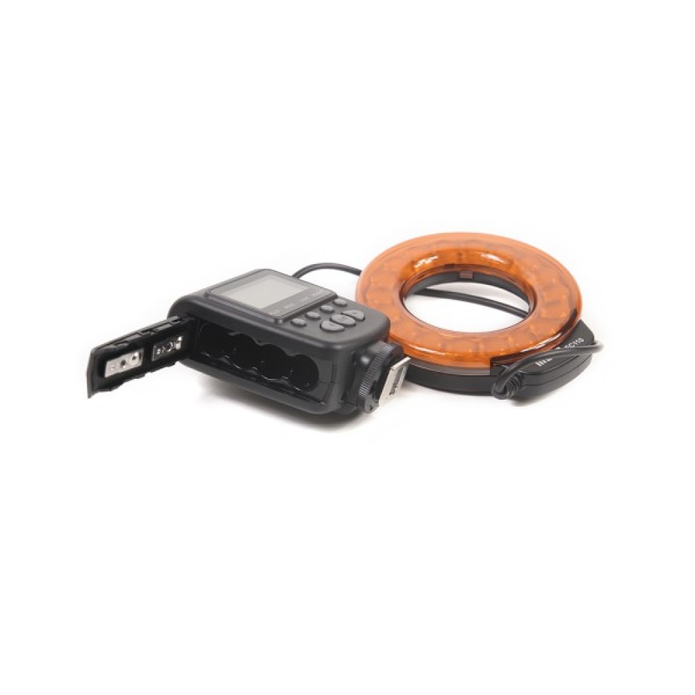 Источник света (LED светодиоды) располагается вокруг объектива, тем самым давая равномерное освещение без теней и хороший контраст. Вспышка FC-110 крепится к объективу при помощи специальных крепежных колец (в комплекте: 52 мм, 55 мм, 58 мм, 62 мм, 67 мм, 72 мм, 77 мм). Эти кольца закручиваются на резьбу объектива, а к ним уже крепиться на зажимах сама вспышка.