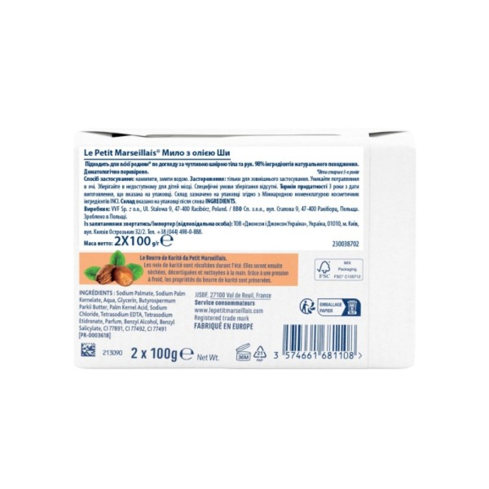 Тверде, мило, Le, Petit, Marseillais, З, олією, Ши, 2, x, 100, г, 3574661681108
