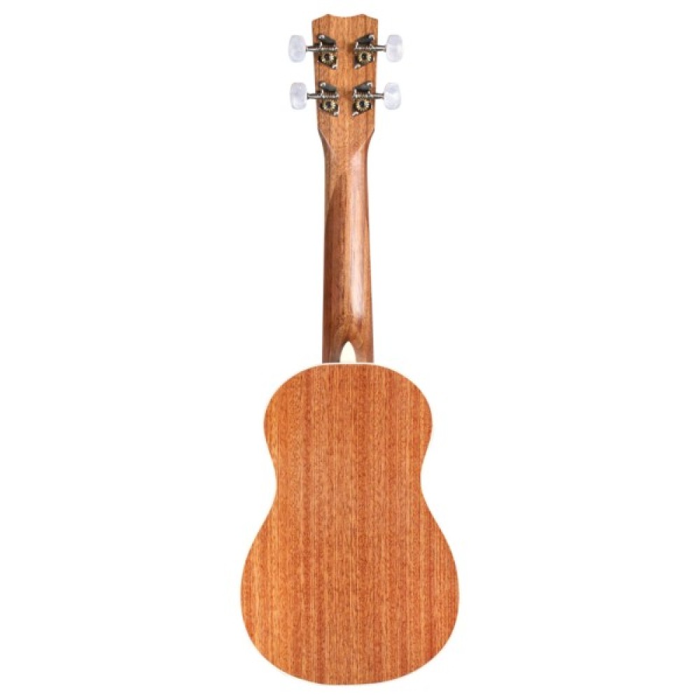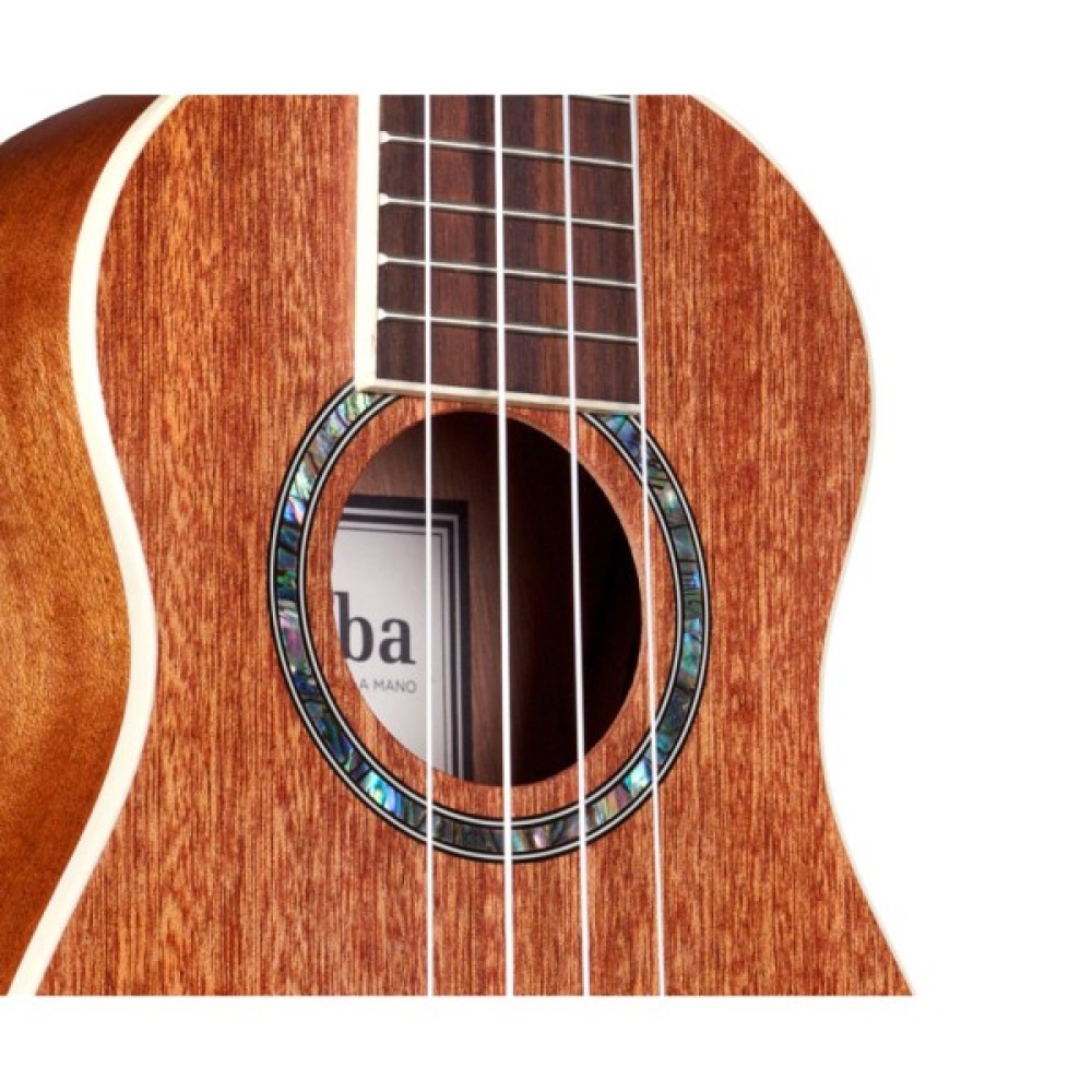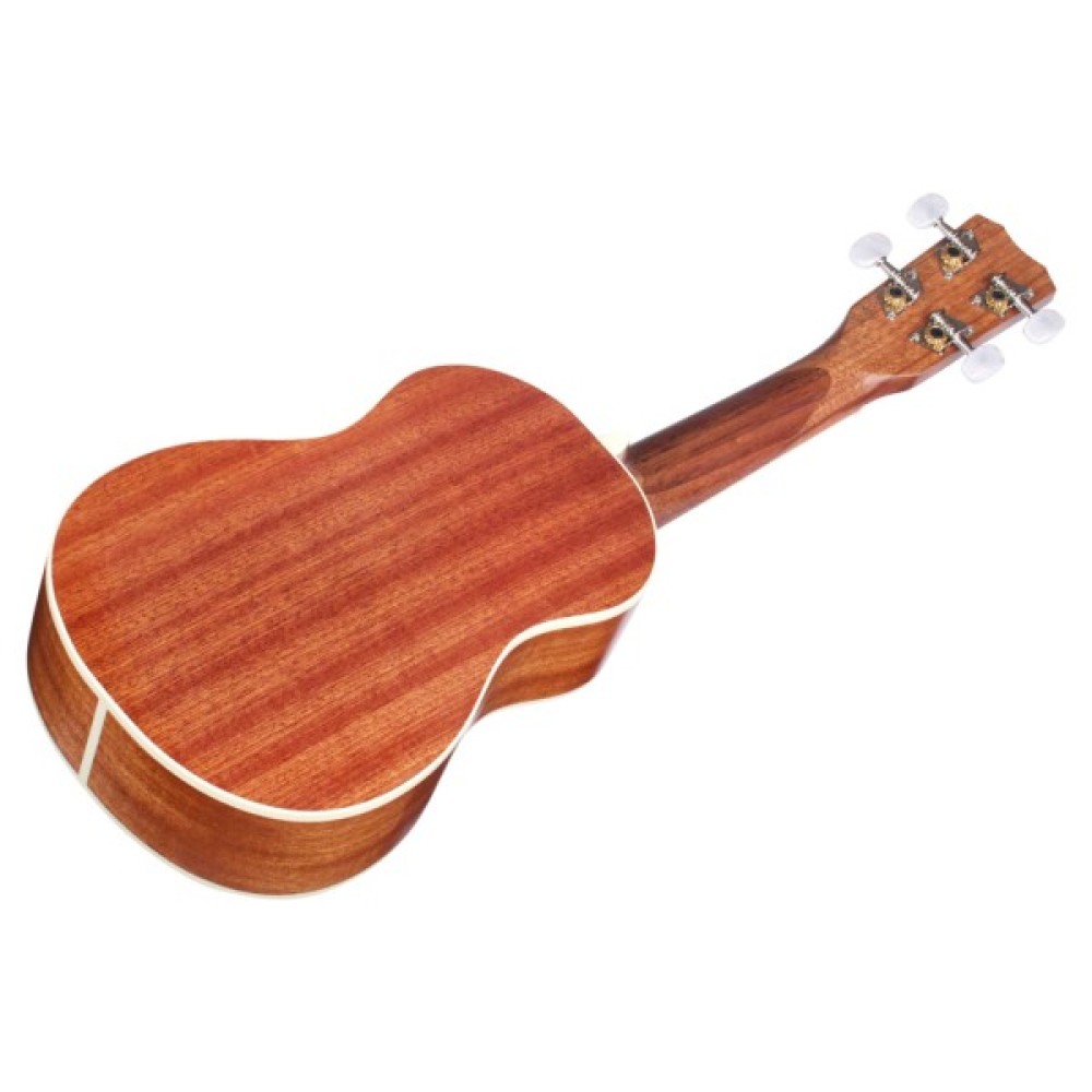 Корпус ручної роботи та накладка грифу захищені окантовкою зі штучної слонової кістки, а резонаторний отвір прикрашений натуральним абалоне. Фірмові кілки з акриловими перламутровими ручками дозволяють швидко та точно налаштувати інструмент та надійно тримають лад. Ця модель безумовно прийдеться до смаку не лише новачкам, але й досвідченим професійним музикантам.