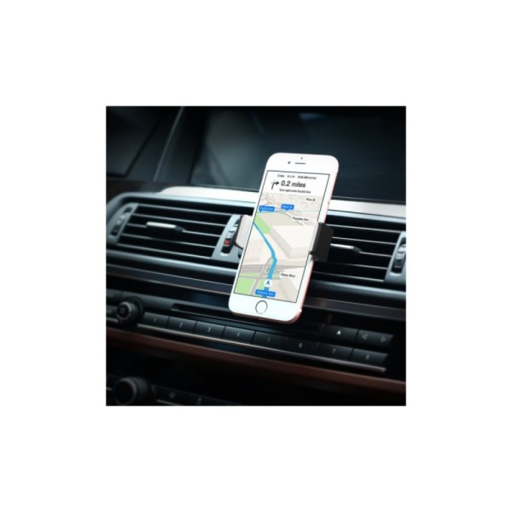 Він обертається на 360 градусів, адаптується під розміри вашого гаджета. Просто прикріпіть тримач у вентиляційний отвір вашого автомобіля, щоб зручно користуватися гаджетом у дорозі. Тримач можна також використовувати на вашому робочому столі вдома та в офісі. Можливість розширення тримача складає до 88 мм. Підходить для смартфонів з діагоналлю екрана 3.5-6'' дюймів.