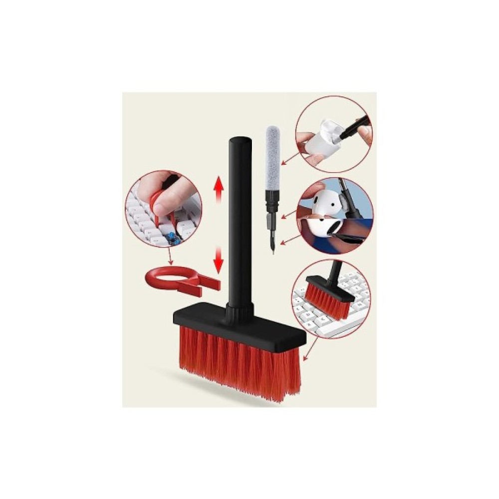 Роздільний дизайн із двома головками: Clean set 5-в-1 набір для чищення комп'ютера з нейлоновою щетиною, флокуюча губка високої щільності щітка, металевий наконечник пера та Keycap знімач, подвійною головкою