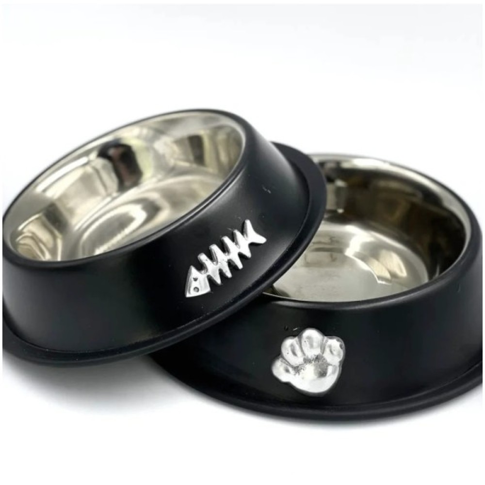 Миска нековзна з хромованим дном 11 см чорна