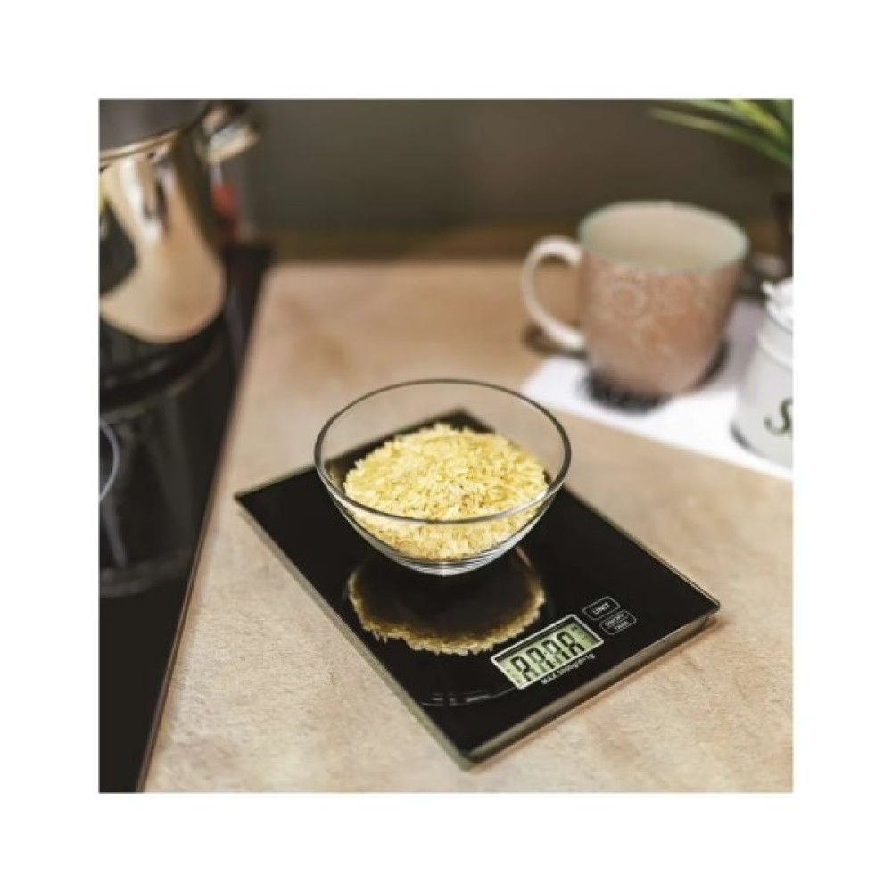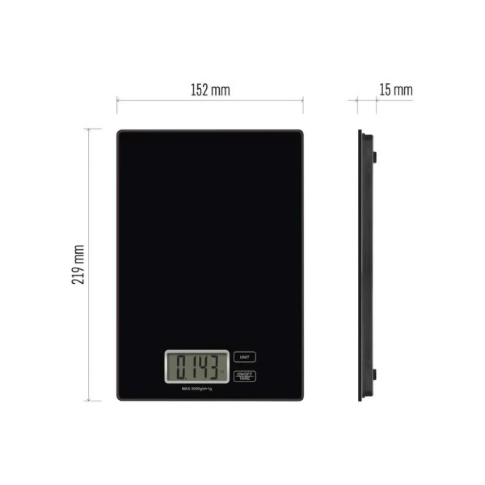 Платформа ваг виконана з міцного скла, що надає пристрою сучасного та стильного вигляду. Максимально допустима вага складає 5 кг, що робить ці ваги придатними для будь-яких кулінарних завдань. Ціна розподілу в 1 грам гарантує точність вимірів, необхідну для приготування складних страв.