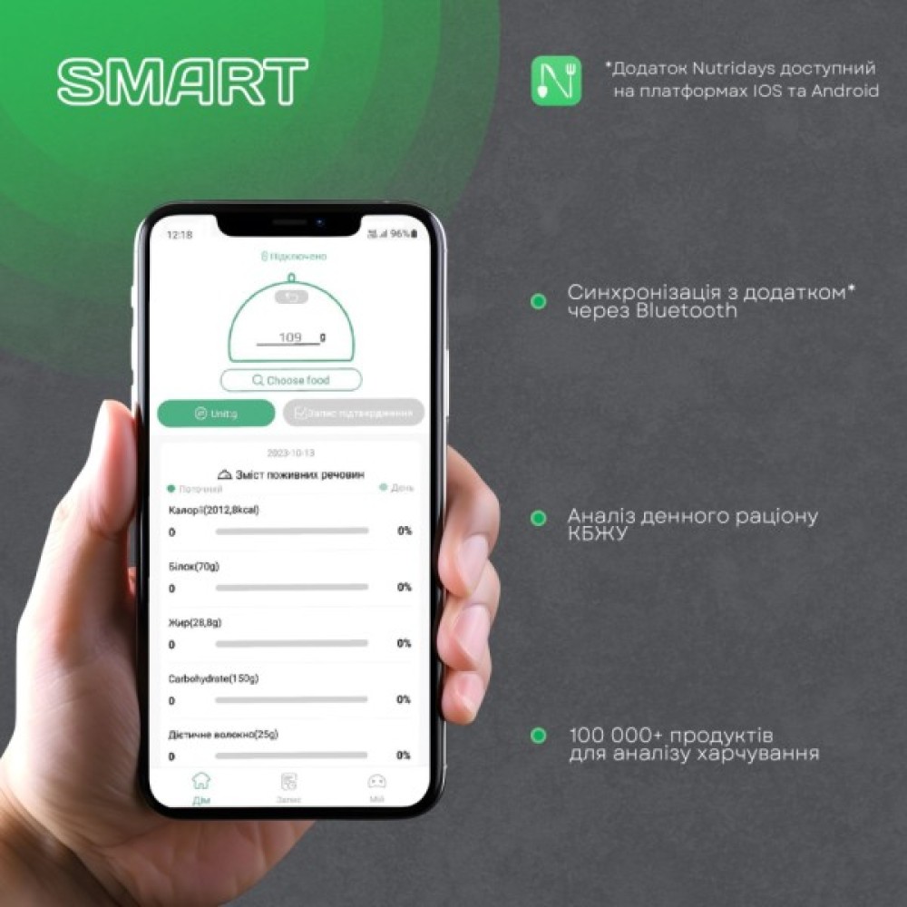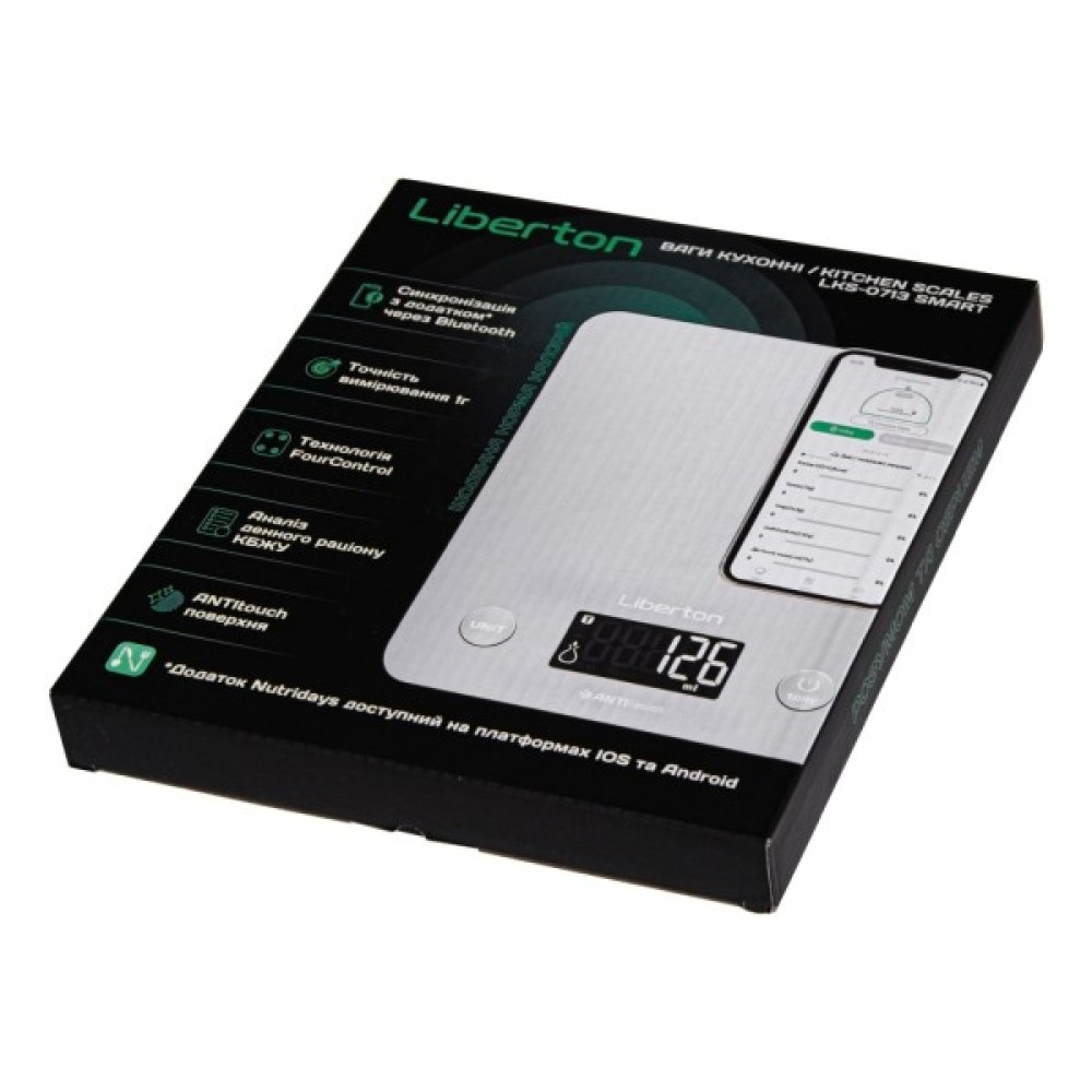 Smart (підключення до планшета або смартфону); автовідключення; вибір одиниць вимірювання; облік тари; індикація слабкого заряду