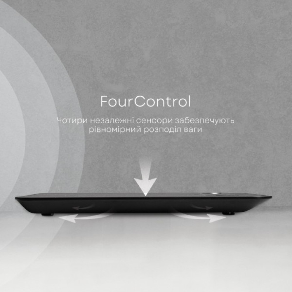 Чотири незалежні сенсори забеспечують рівномірний розподіл ваги, гарантуючи точність вимірювання до граму.