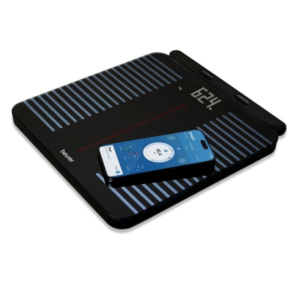 Результати миттєво синхронізуються з додатком beurer HealthManager Pro через Wi-Fi або Bluetooth. Усі дані відображаються у вигляді зручних графіків, що допомагає аналізувати прогрес, формувати здорові звички та досягати гармонії у спорті й житті. Налаштування максимально просте — достатньо відсканувати QR-код.