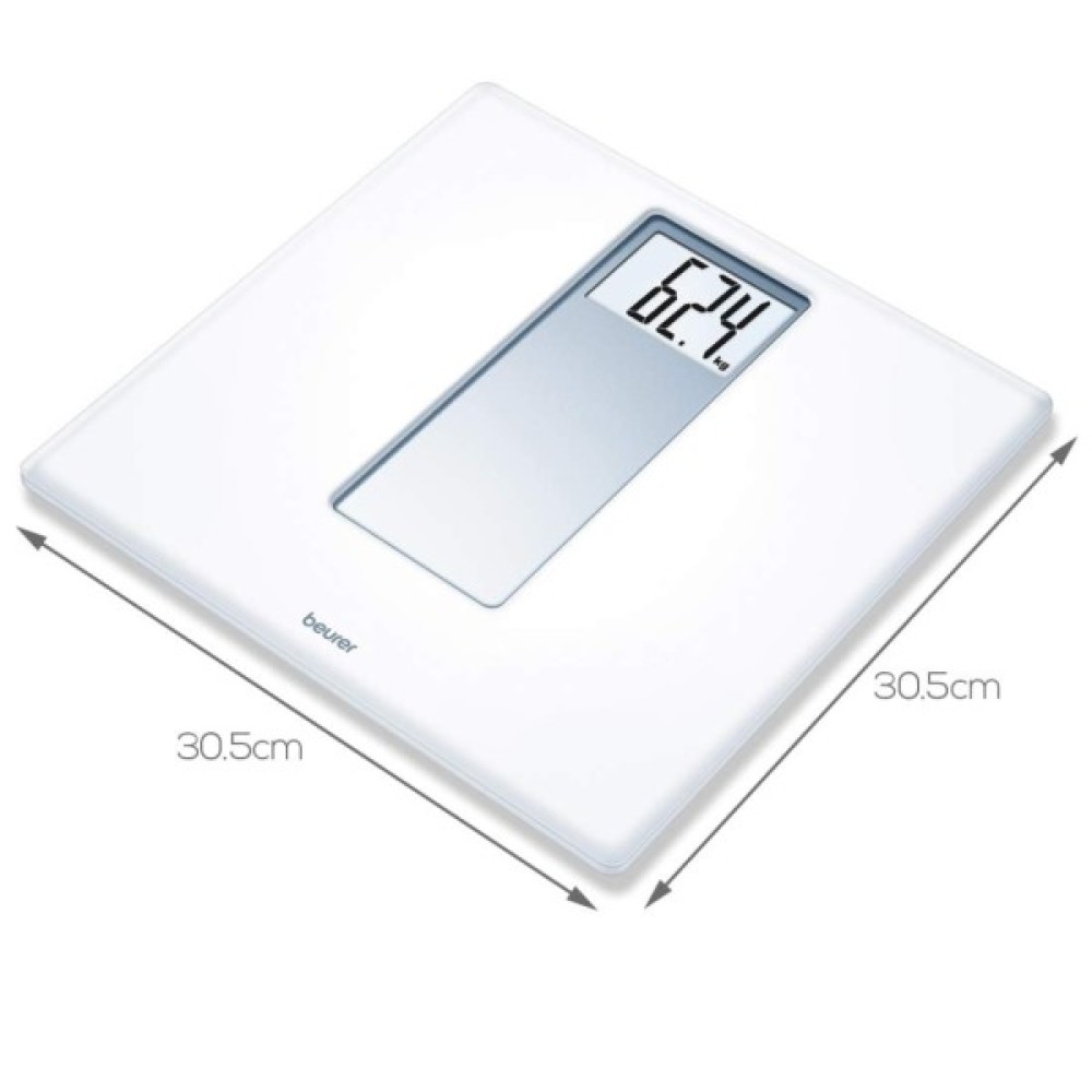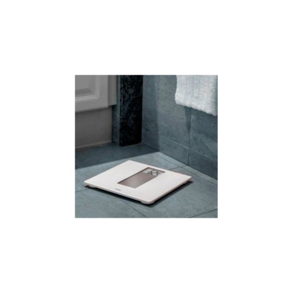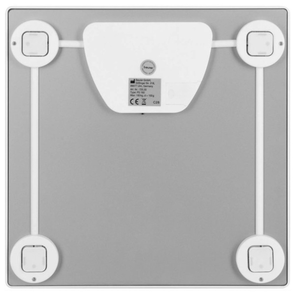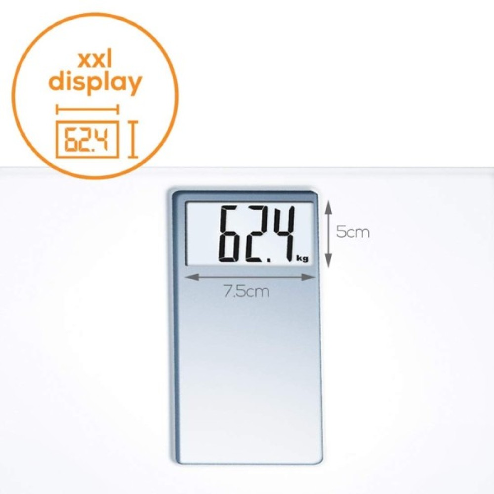 Ваги підлоги з елегантною скляною вставкою. Для контролю за масою тіла. Великий РК-дисплей для максимального контролю результатів зважування. Максимальне навантаження складає 180 кг (396 фунтів/28 Ст.), Ціна поділки 100 г (0,2 фунти/0,01 Ст.). Чищення: ваги можна протирати вологою ганчіркою, за потреби використовуйте миючий засіб. Не занурюйте ваги у воду. Ніколи не мийте ваги під проточною водою. Ваги слід берегти від ударів, впливу вологи, пилу, хімічних агентів, сильних коливань температури та електромагнітних полів. Не ставте прилад поруч із джерелами тепла.