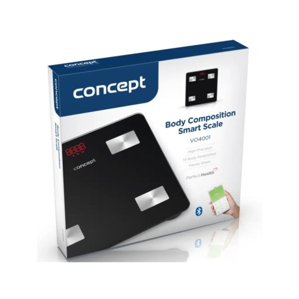 Персональні діагностичні ваги Concept VO4001 Perfect Health забезпечують комплексний аналіз організму. Вони витримують навантаження до 180 кг і можуть вимірювати 13 параметрів тіла за допомогою біоелектричного імпедансу. З додатком Feelfit ви будете мати всі дані під контролем.