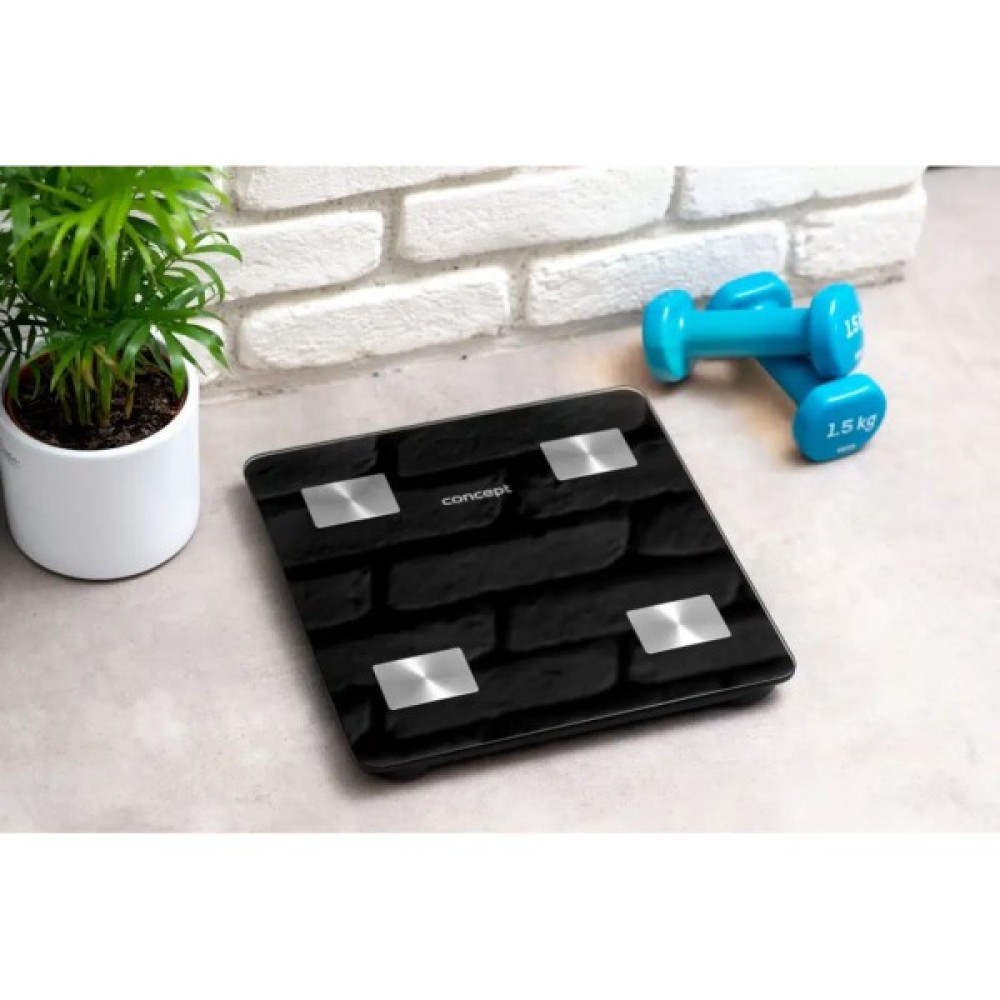 З розумними персональними вагами Concept VO4001 Perfect Health ви зможете контролювати своє здоров'я. Окрім ваги тіла, вони можуть аналізувати 12 інших параметрів, включаючи жировий прошарок, м'язову масу або метаболічний вік. Максимальна вимірювана вага - 180 кг, мінімальна вимірювана вага - 0,2 кг.