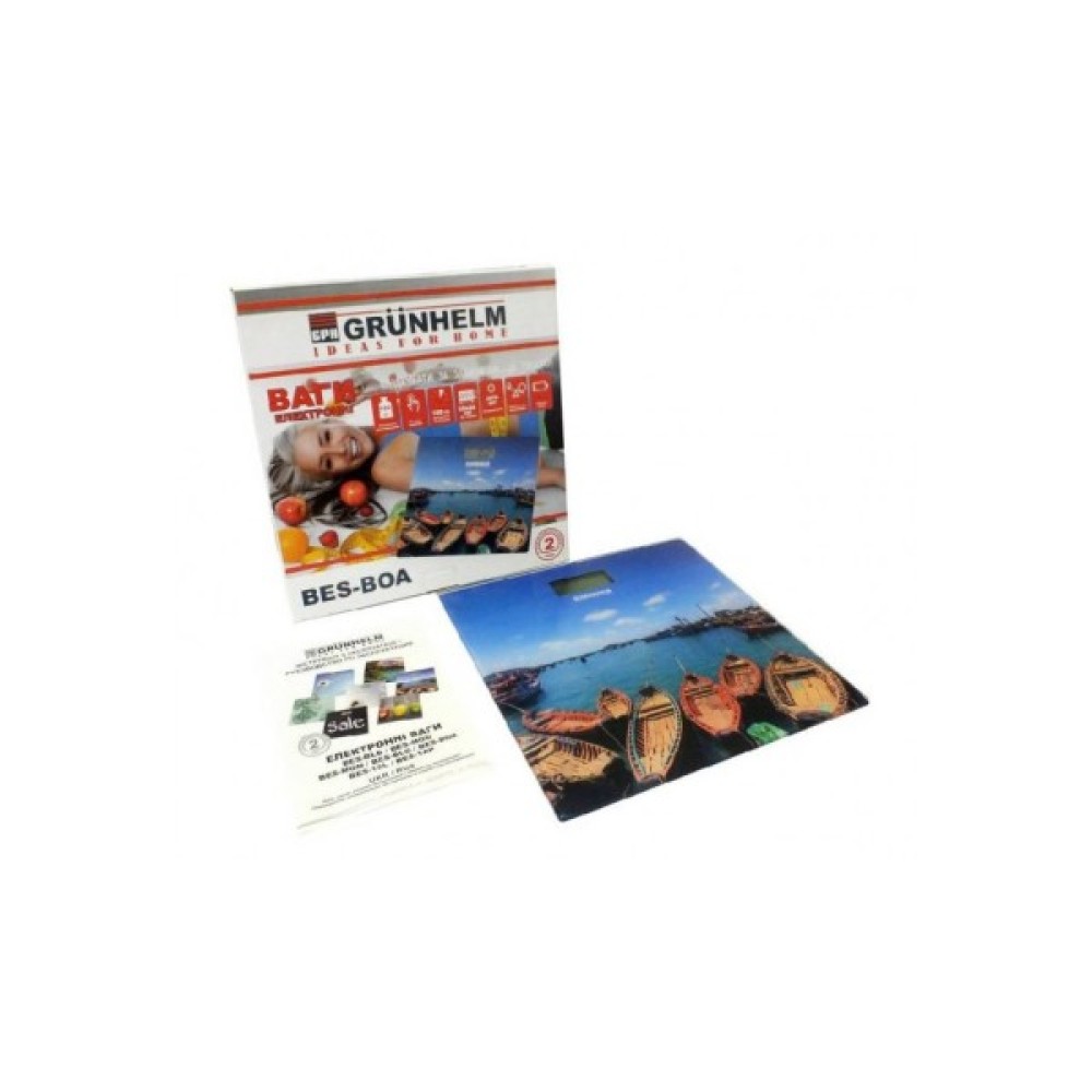 Grunhelm BES-BOA - стильні, зручні підлогові ваги зроблені з безпечного загартованого скла і ударостійкого пластику. Мають автоматичне включення і відключення та сенсорне управління. Максимально допустима вага становить 180 кг, при цьому похибка не більше 100 гр. Ваги підтримують різні одиниці виміру: грами, кілограми, фунти, унції; вся інформація відображається на великому екрані.