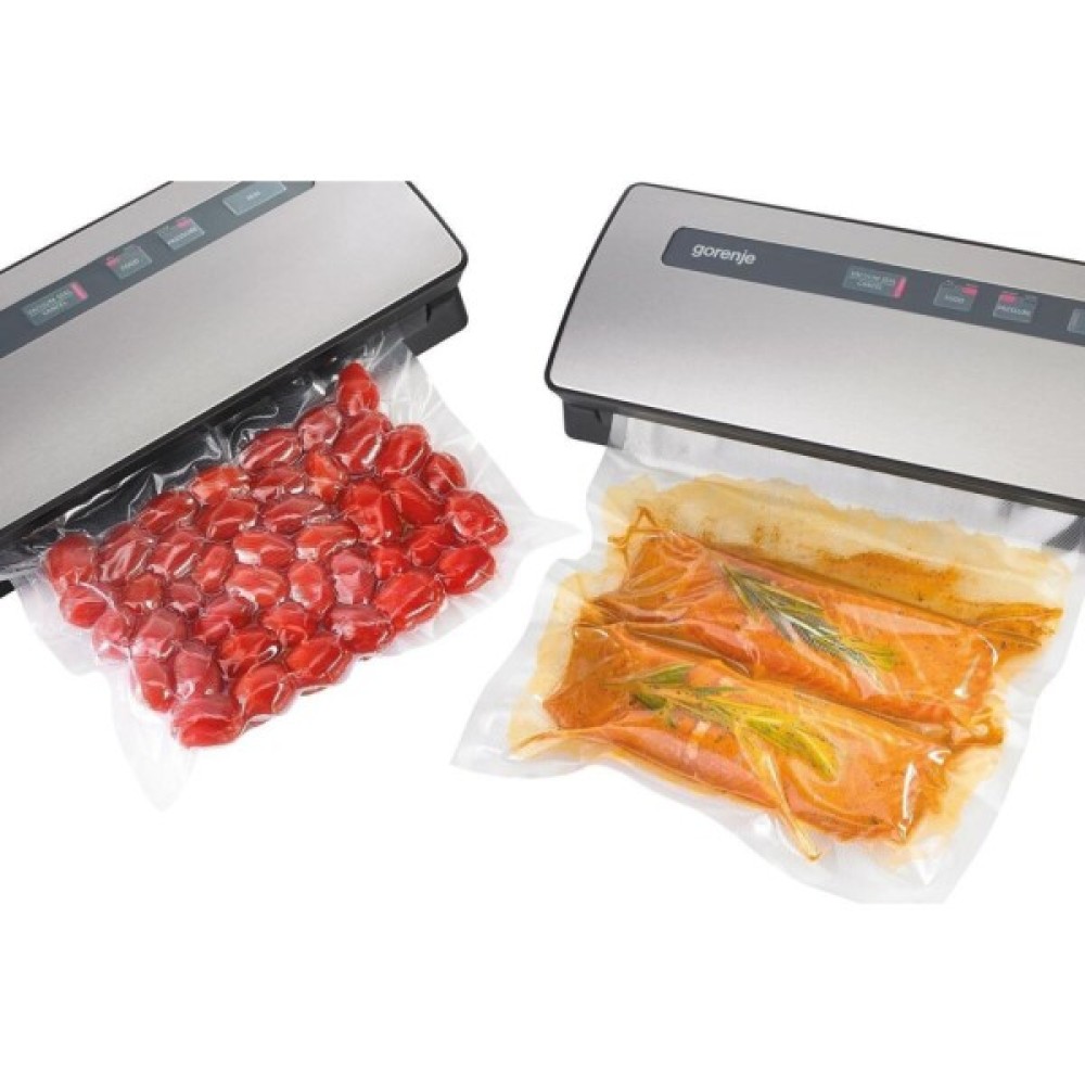 Вакууматор Gorenje – ваш незамінний кухонний помічник! Цей стильний і простий в експлуатації пристрій стане вашим найкращим другом на кухні. Він допомагає зручно та ефективно зберігати свіжість продуктів: чи то готові страви, м'ясо, риба чи овочі. Завдяки вакуумному пакуванню продукти зберігають свої смакові якості довше, а запахи не поширюються у холодильнику. Зручність та універсальність роблять Gorenje ідеальним вибором для тих, хто цінує свіжість та порядок на кухні. Спробуйте самі і переконайтеся, як легко зберегти продукти на довгий час!