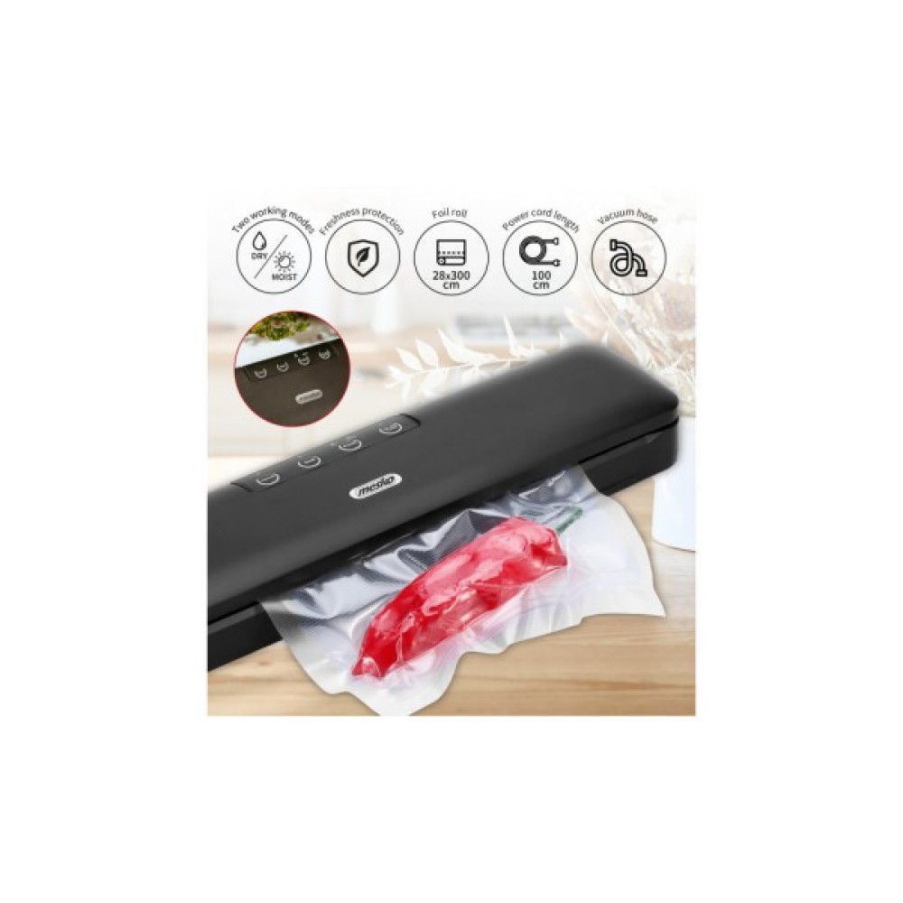 Вакууматор Mesko MS 4492 допоможе вам зберегти смак, аромат та поживні речовини продуктів, він оснащений необхідною потужністю для швидкого вакуумування. З ним ви зможете швидко запакувати охолоджене м’ясо, сири, фрукти чи овочі для заморожування, залишки обіду тощо, а також готувати страви методом sous-vide.