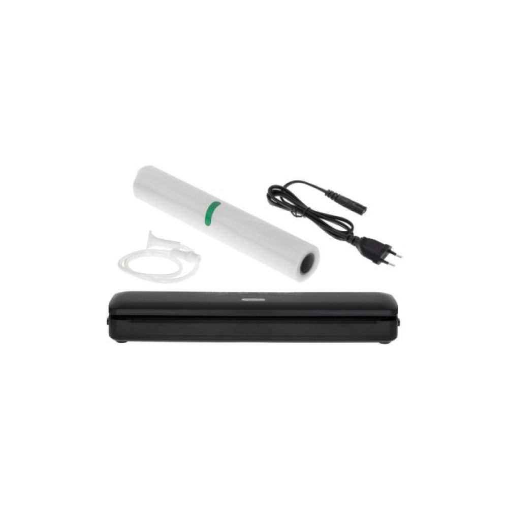 Він постачається у комплекті з вакуумним шлангом для відсмоктування повітря із зовнішніх ємностей та рулоном фольги шириною 28 см і довжиною 3 м – ви зможете почати користуватись ним відразу після покупки.