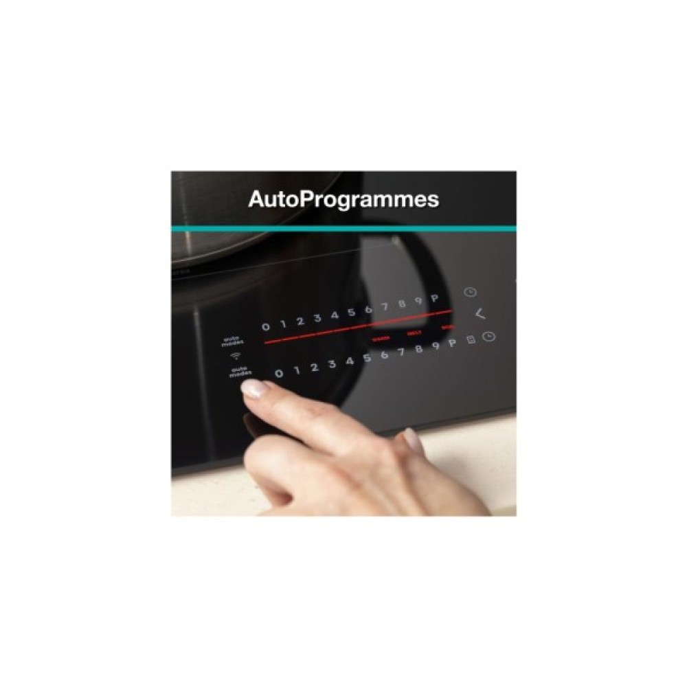 Багатофункціональний тачскрін-дисплей дозволяє інтуїтивно керувати процесом приготування. Серед особливих можливостей ви знайдете функцію Booster для швидкого розігріву, а також турбо-режим, з яким час приготування значно скорочується. Stop&Go забезпечує миттєве призупинення в разі потреби, а вбудований таймер і програматор дозволяють налаштувати точний час приготування. Ви також зможете скористатися унікальними функціями, такими як HoodConnect для автоматичної синхронізації з витяжкою та ConnectLife для дистанційного керування поверхнею.