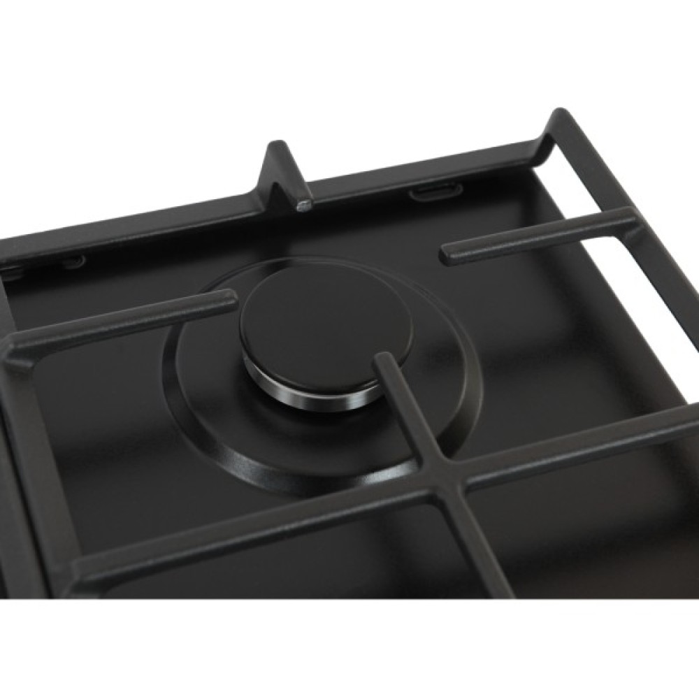 Газова поверхня, виготовлена з високоякісної емалі, забезпечує не тільки стильний вигляд, а й легкість у догляді. Її чорний колір додає елегантності та сучасності вашій кухні. Завдяки своїм розмірам (13 х 60 х 52 см), ця варильна поверхня легко інтегрується в більшість кухонних просторів, а нішові розміри 5.2 х 55.8-56 х 48.8-49 см дозволяють без зайвих труднощів встановити її в робочу поверхню.
