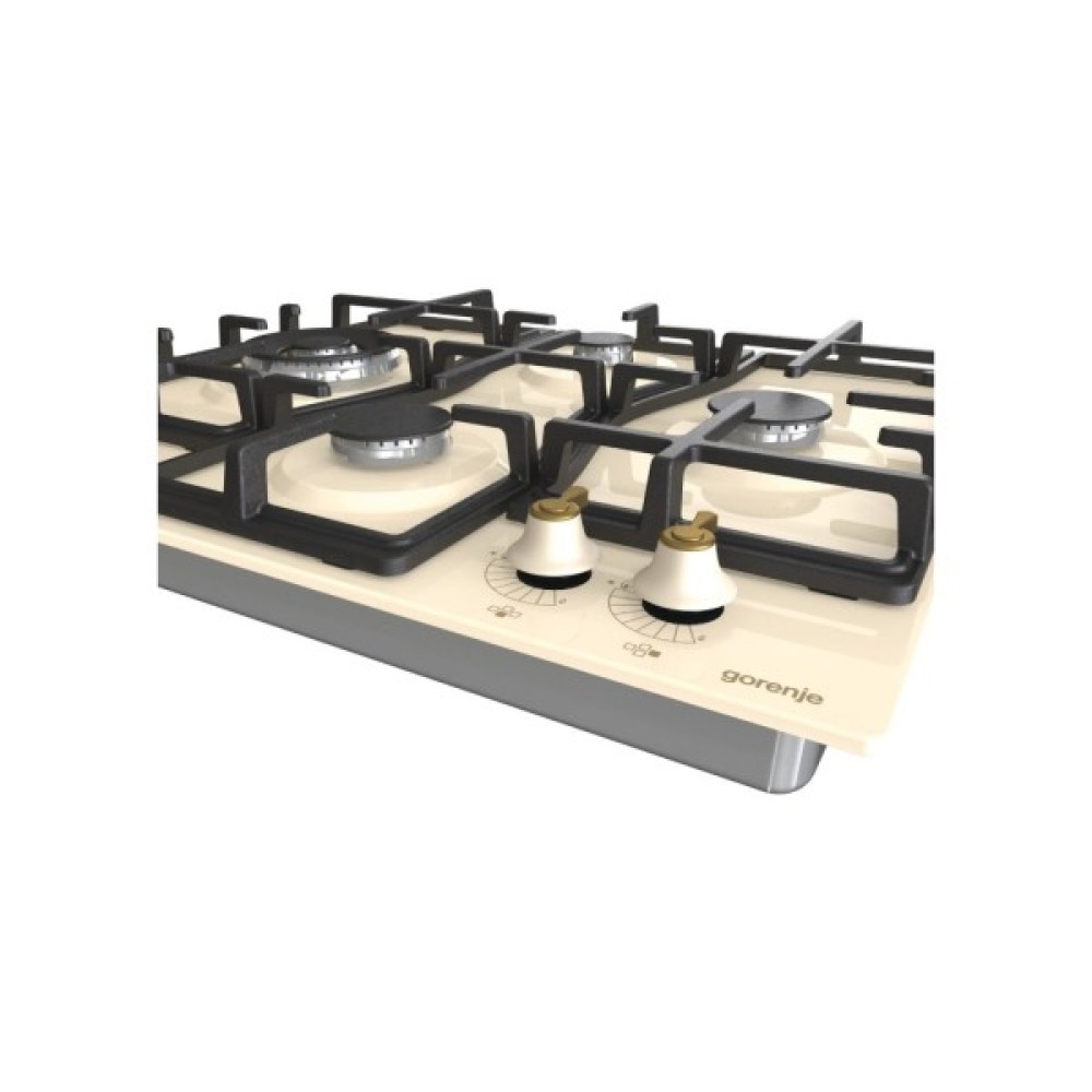 Тип поверхні Gorenje GW6D42CLI — газова, а матеріал, з якого вона виготовлена, це високоякісна емаль, яка надає не лише витончений вигляд, але й легкість у догляді. За класичним дизайном та кольором слонової кістки ця модель легко інтегрується в будь-який інтер'єр кухні, додаючи йому елегантності.