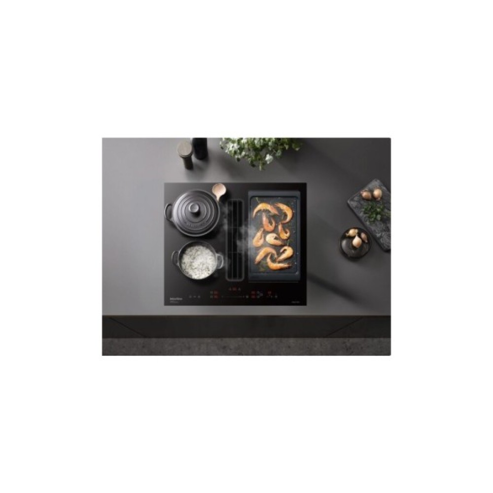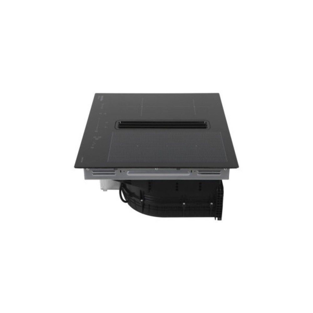 Не менш важлива частина цієї моделі — вбудована витяжка з енергоефективністю класу А++, яка працює в режимі відведення або рециркуляції. Функція автоматичної роботи витяжки дозволяє їй синхронізуватися з варильною поверхнею, підлаштовуючи потужність витяжки до обраних параметрів приготування.