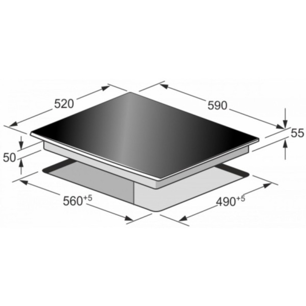 Ще однією перевагою цієї варочній поверхні є наявність зон розширення, які дозволяють використовувати різноманітні за розмірами каструлі та сковорідки, даруючи вам більше кулінарних можливостей. Розміри ніші для вбудовування становлять 56.5 х 49.7 х 5.5 см, що дозволяє без зусиль інтегрувати пристрій у ваш інтер'єр, а компактні загальні розміри 56 х 49.5 см не займатимуть зайвого простору на кухні.