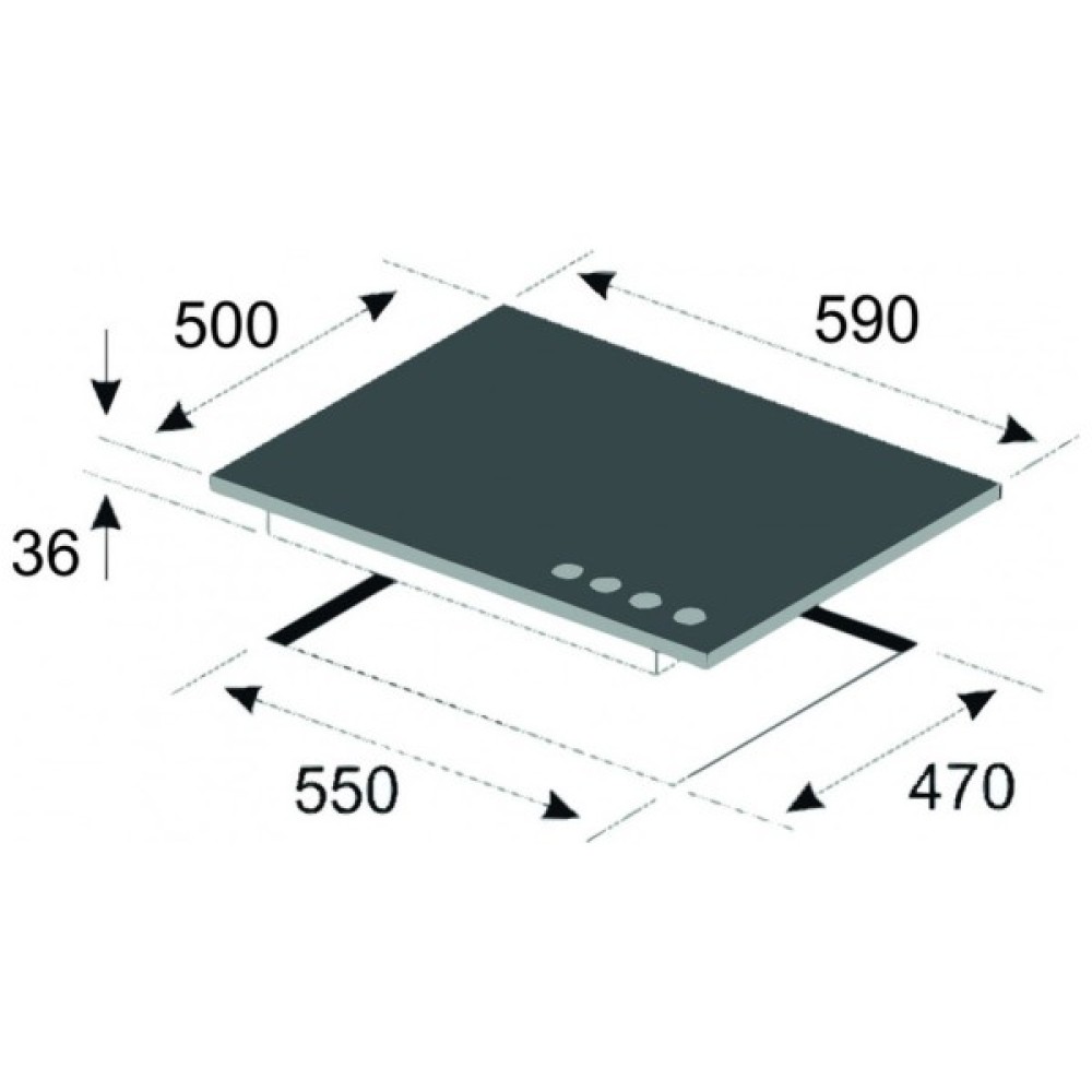 Ця варильна поверхня має оптимальні розміри для вбудовування: 55 х 47 х 3.8 см у нішу і загальні габарити 59 х 50 х 5.5 см, що дозволяє зручно розмістити її навіть у невеликих кухнях. Компактність у поєднанні з потужністю ставить цю модель на особливу позицію серед конкурентів.