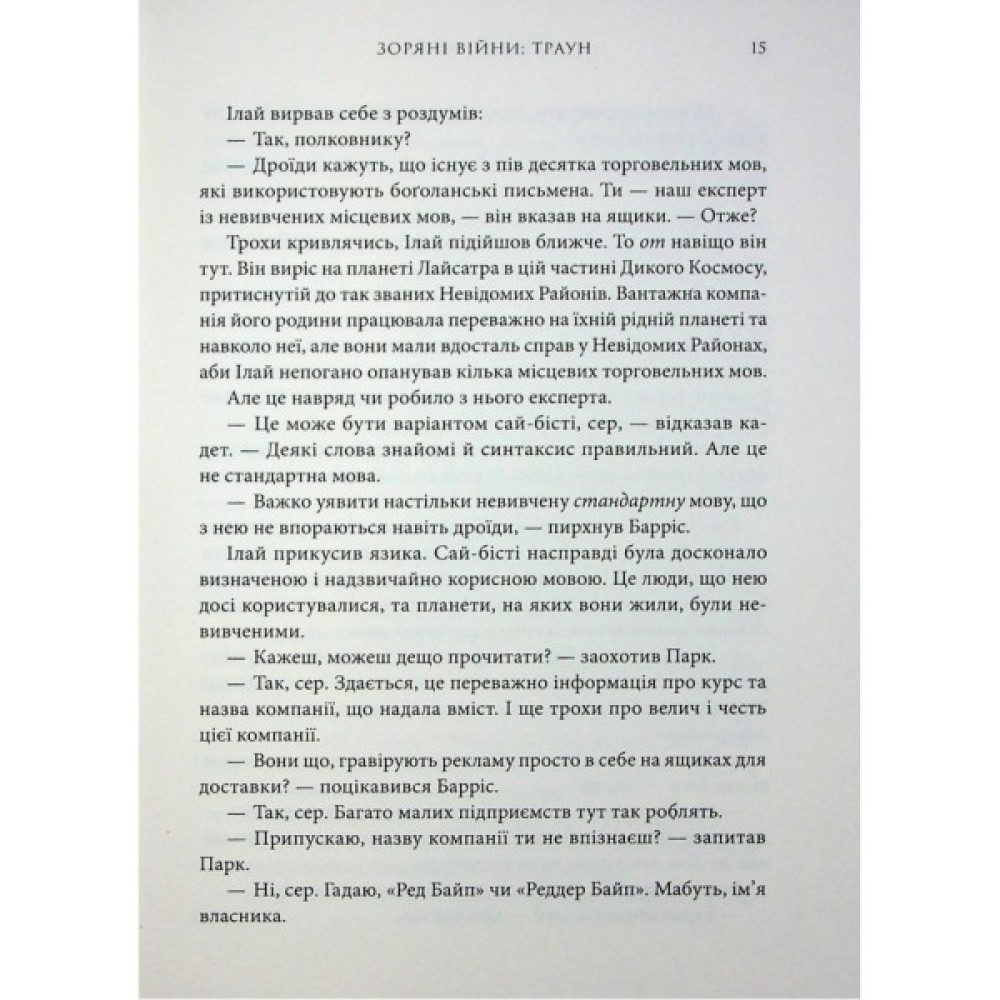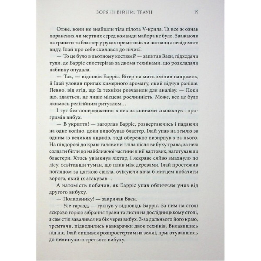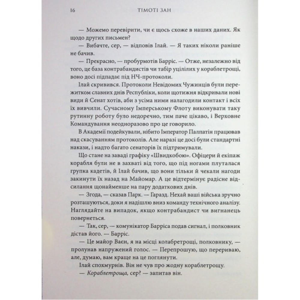 Тепер же, у романі «Зоряні Війни: Траун» Тімоті Зан описує доленосні події, які привели синьошкірого й червоноокого майстра військової стратегії та смертоносних бойових дій на найвищі щаблі влади — і безчестя.