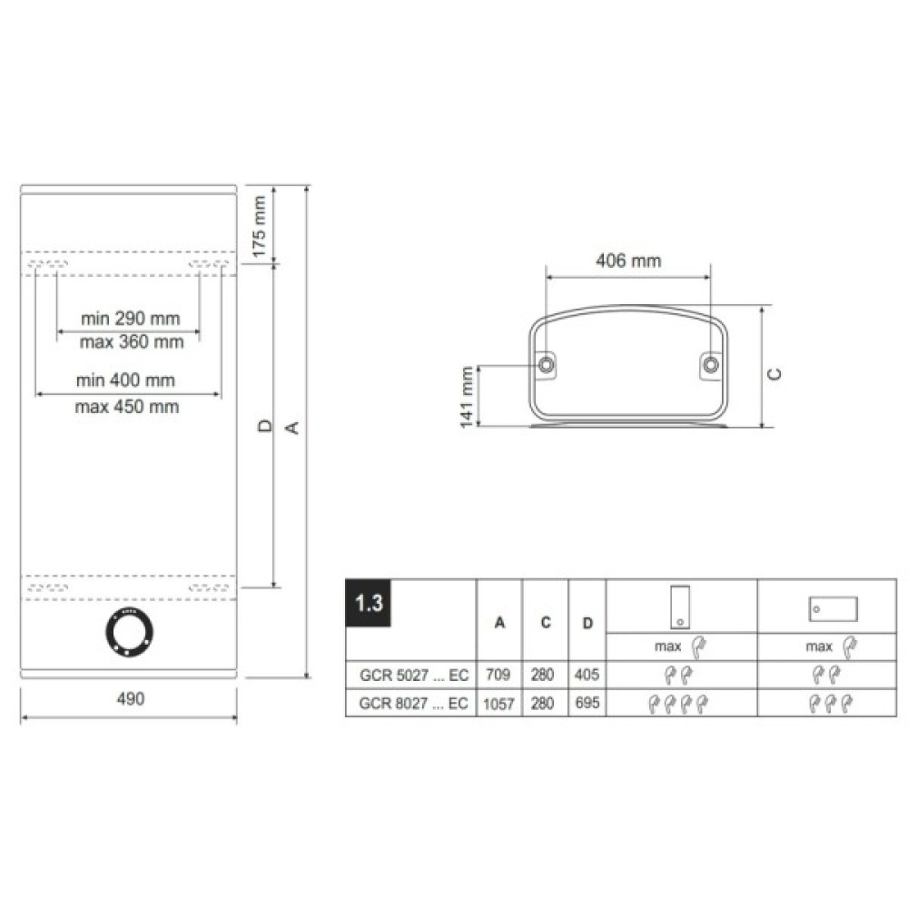 Форма бойлера прямокутна; slim (тонка)