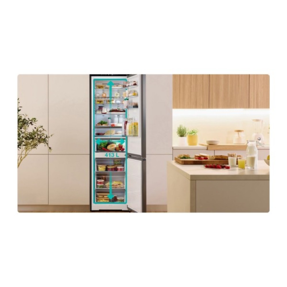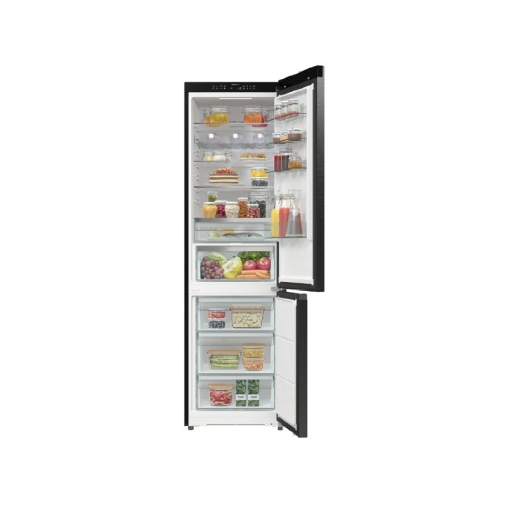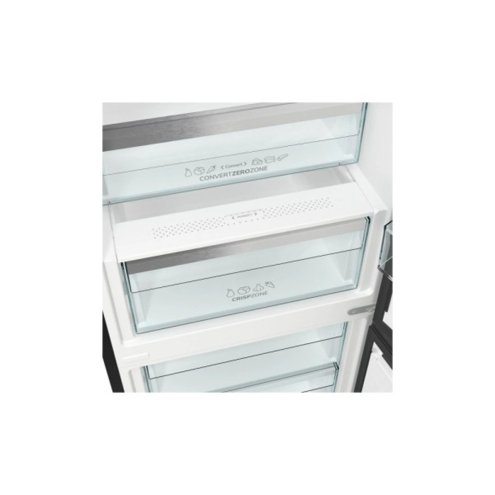 Gorenje NRB620E6BX4WFE – це місткий двокамерний холодильник для сучасної кухні, що поєднує великий внутрішній простір, акуратний темний дизайн та зручність у щоденному користуванні. Модель добре підходить для сім'ї, яка робить великі закупівлі і хоче зберігати продукти організованіші, без відчуття тісноти всередині. Формат із нижньою морозильною камерою робить його практичним варіантом для тих, хто хоче максимум місткості у стандартній ширині 59,5 см.