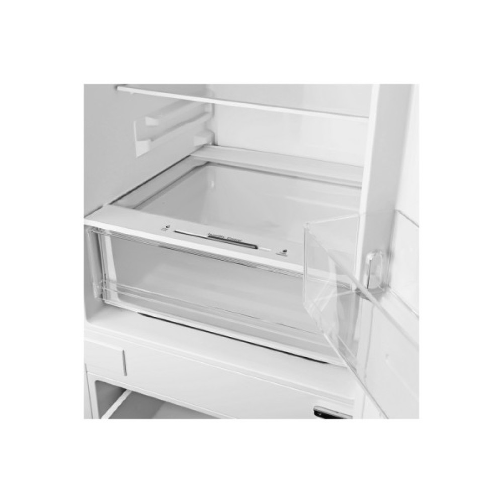 Морозильна камера, розділена на три секції, забезпечує ефективне зберігання замороженої їжі з максимальною потужністю заморозки до 4 кг на добу. Система No Frost у морозильній камері гарантує зручність та доступність до продуктів без зусиль з видалення льоду вручну.
